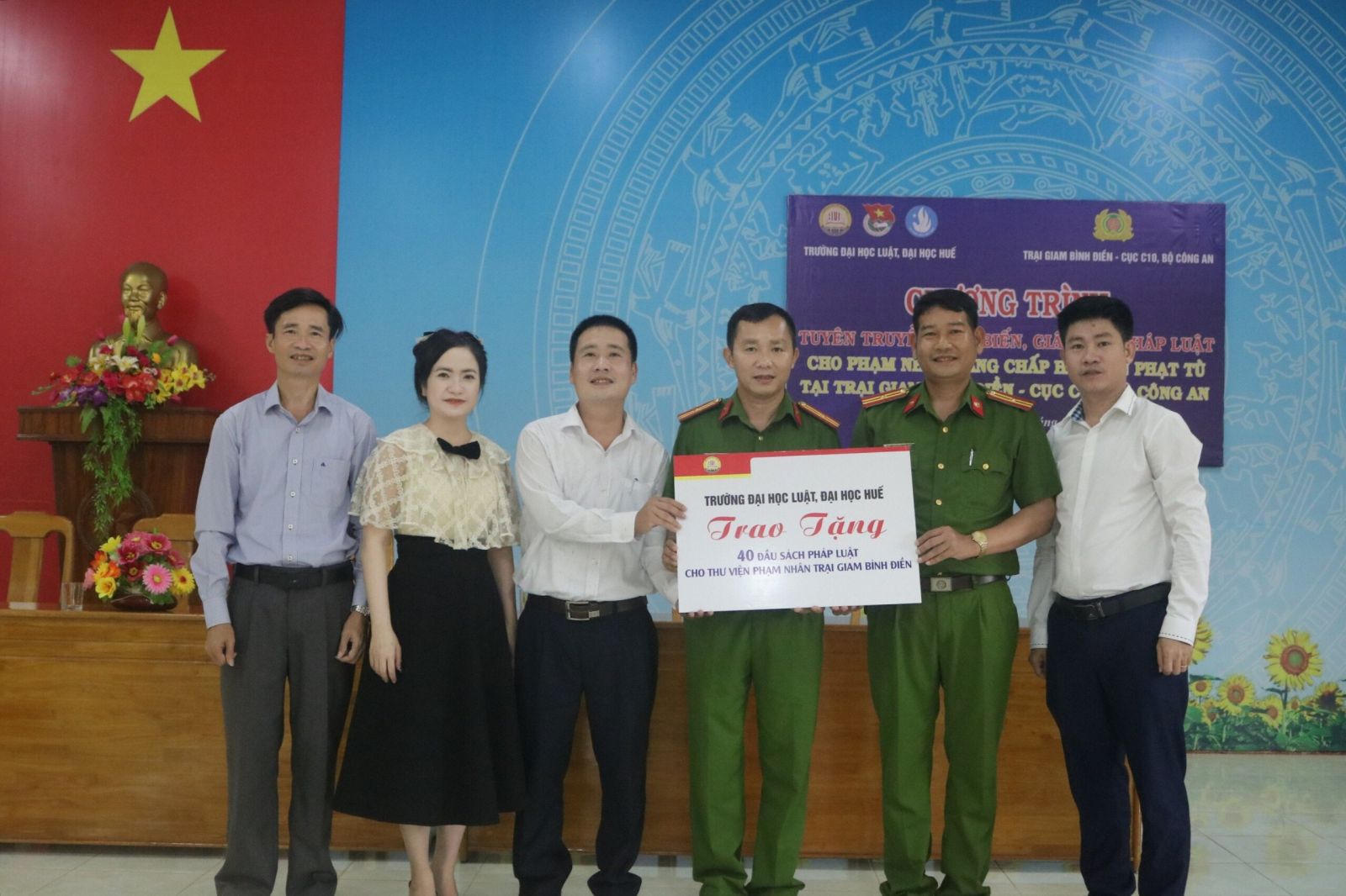 Trong nội dung chương trình, Trường Đại học Luật, Đại học Huế đã trao tặng 40 đầu sách pháp luật cho Thư viện phạm nhân trại giam Bình Điền góp phần làm phong phú thêm Thư viện phạm nhân và nguồn tư liệu nghiên cứu sau giờ lao động.