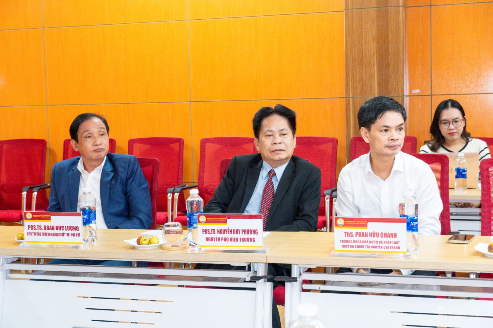 Về phía Trường Đại học Luật, Đại học Huế có PGS.TS. Đoàn Đức Lương, Hiệu trưởng Nhà trường; PGS.TS. Nguyễn Duy Phương, nguyên Phó Hiệu trưởng Nhà trường; Trưởng, phó các đơn vị trực thuộc Nhà trường cùng các nhà khoa học, giảng viên và đại biểu đến từ các cơ sở đào tạo, nghiên cứu pháp luật trong cả nước.