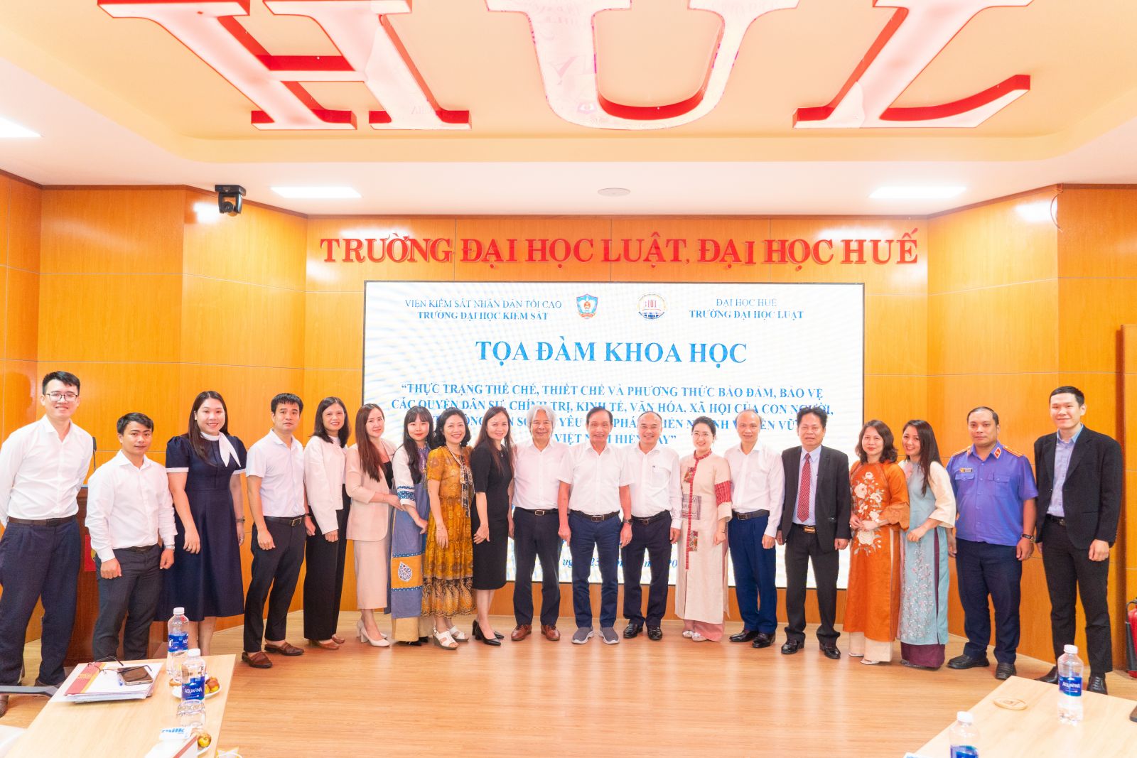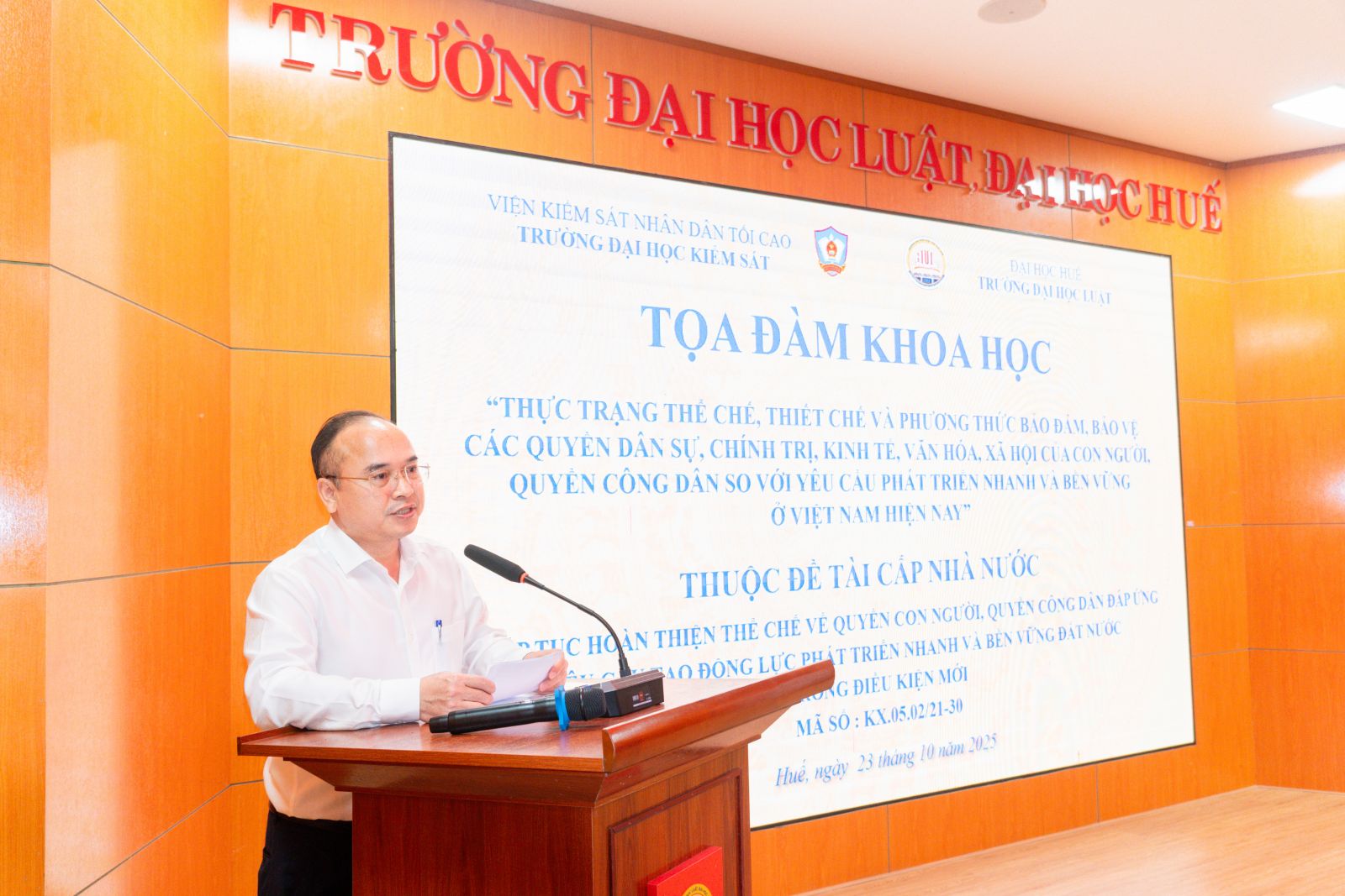 Ngày cập nhật: 23-10-2025Chiều ngày 23/10/2025, Trường Đại học Luật, Đại học Huế phối hợp cùng Trường Đại học Kiểm sát tổ chức tọa đàm khoa học với chủ đề “Thực trạng thể chế, thiết chế và phương thức bảo đảm, bảo vệ các quyền dân sự, chính trị, kinh tế, văn hóa, xã hội của con người, quyền công dân so với yêu cầu phát triển nhanh và bền vững ở Việt Nam hiện nay.”