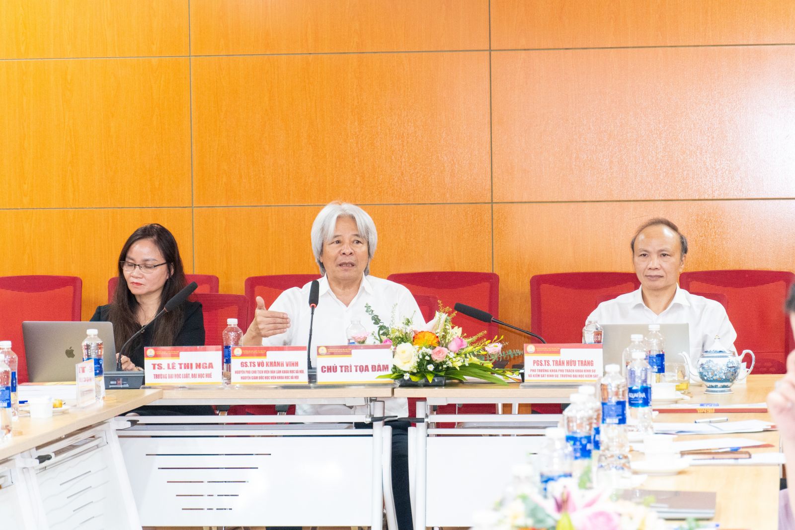 Tọa đàm diễn ra dưới sự chủ trì của các chuyên gia đầu ngành: GS.TS. Võ Khánh Vinh, Nguyên Phó Chủ tịch Viện Hàn lâm Khoa học Xã hội Việt Nam; TS. Nguyễn Văn Khoát, Hiệu trưởng Trường Đại học Kiểm sát và TS. GVC. Lê Thị Nga, nguyên Trưởng khoa Luật Hành chính, Trường Đại học Luật, Đại học Huế.