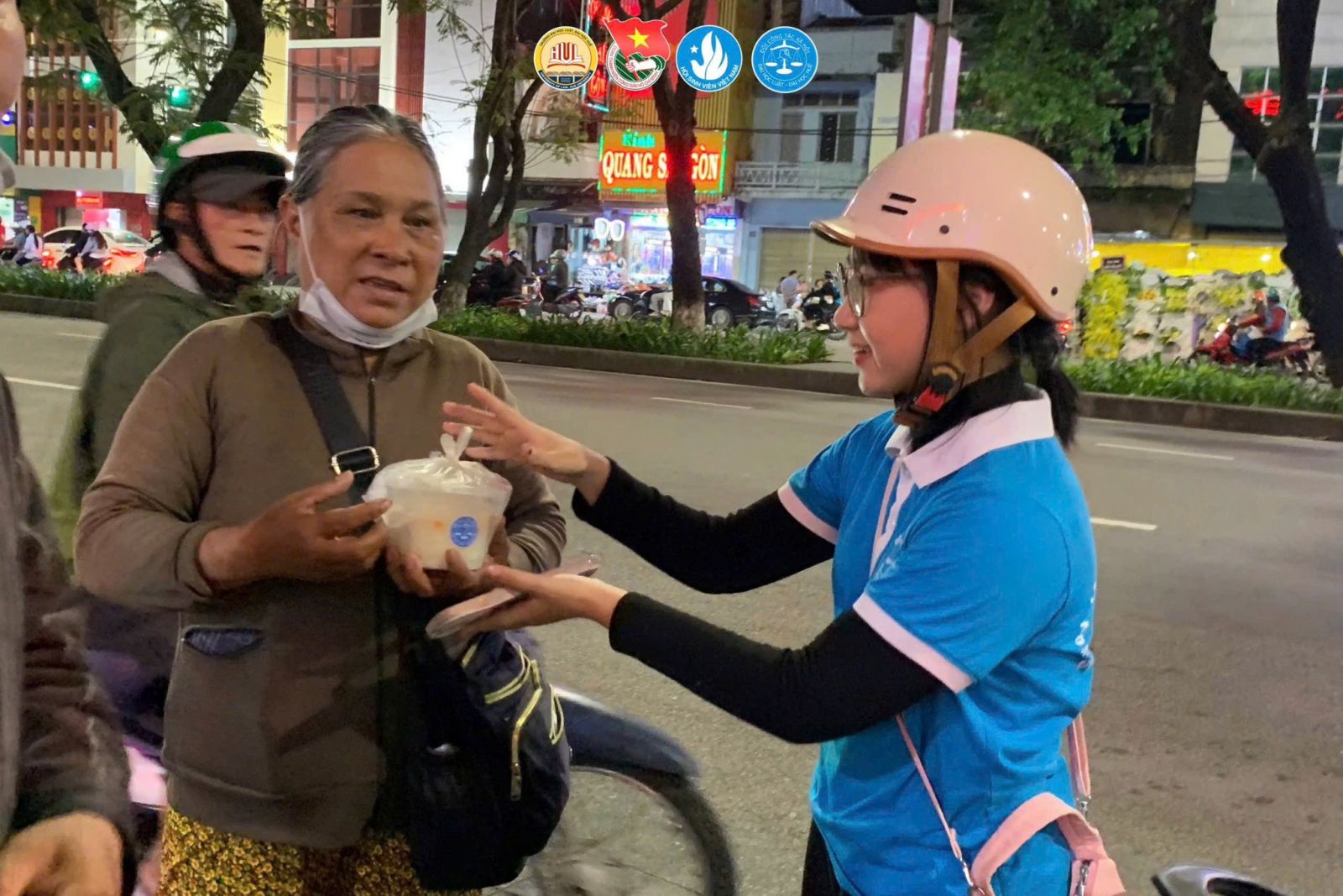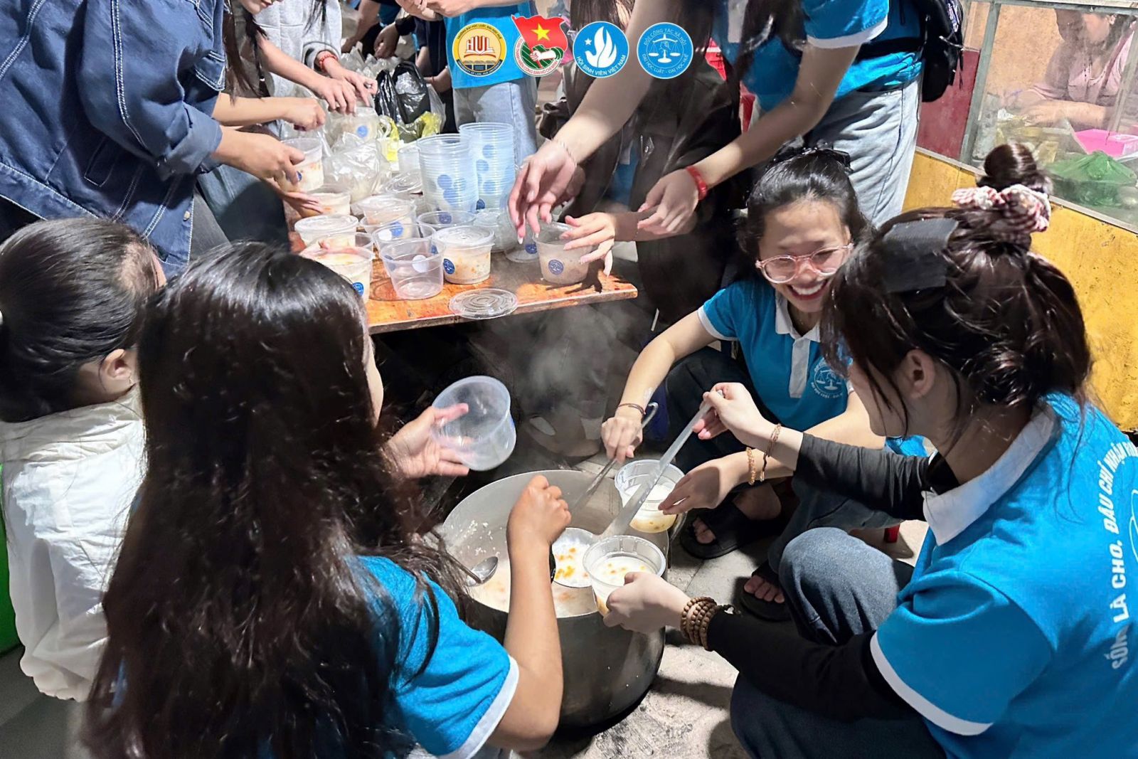 Từ những công đoạn chuẩn bị ban đầu như sơ chế nguyên liệu, nấu cháo, đóng hộp cho đến khi từng bát cháo được trao tận tay những cô chú, anh chị lao động trên đường phố – tất cả đều diễn ra trong tinh thần đoàn kết, trách nhiệm và đầy sự sẻ chia. Mỗi người một việc, mỗi bàn tay góp sức đã cùng nhau tạo nên những nồi cháo nóng hổi, thơm ngon và đong đầy tình cảm.