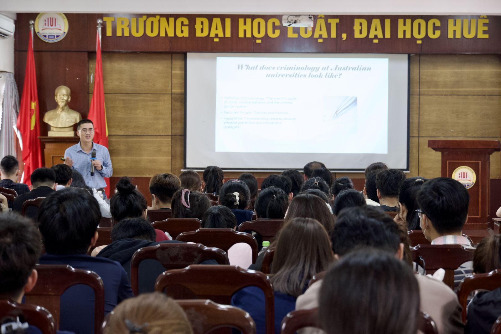 Bên cạnh đó TS. Lương Thanh Hải còn chia sẻ các phương pháp học tập và nghiên cứu về Tội phạm học và Tư pháp hình sự ở Úc và liên hệ với thực tiễn ở Việt Nam; các kinh nghiệm tìm kiếm các học bổng du học hệ cao học và nghiên cứu sinh dành cho các giảng viên và sinh viên nhà trường.