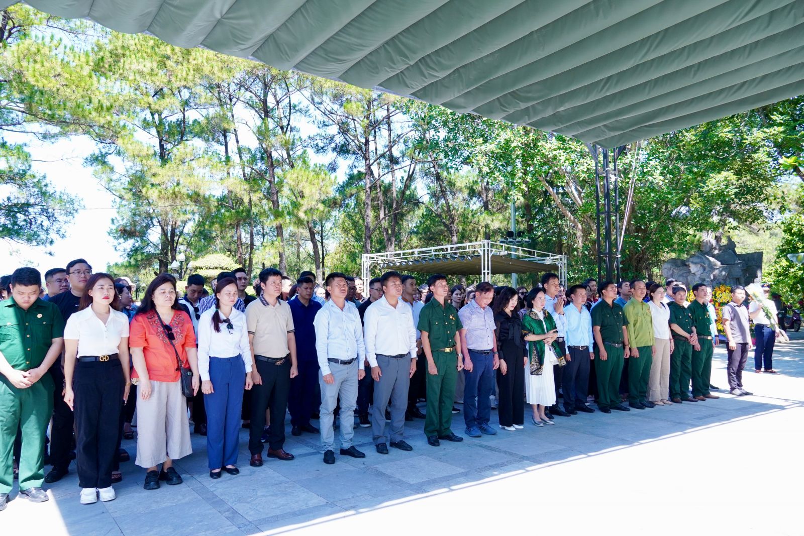 Trong không khí trang nghiêm, đoàn đã thành kính dâng vòng hoa và thắp nén hương thơm lên Đài tưởng niệm, bày tỏ lòng biết ơn sâu sắc đối với những người con ưu tú của dân tộc đã không tiếc máu xương vì nền độc lập, tự do của Tổ quốc. Sau phần lễ, đoàn đã đến từng khu mộ liệt sĩ, thắp hương tưởng niệm và ghi sổ lưu niệm tại Nhà tưởng niệm chung.