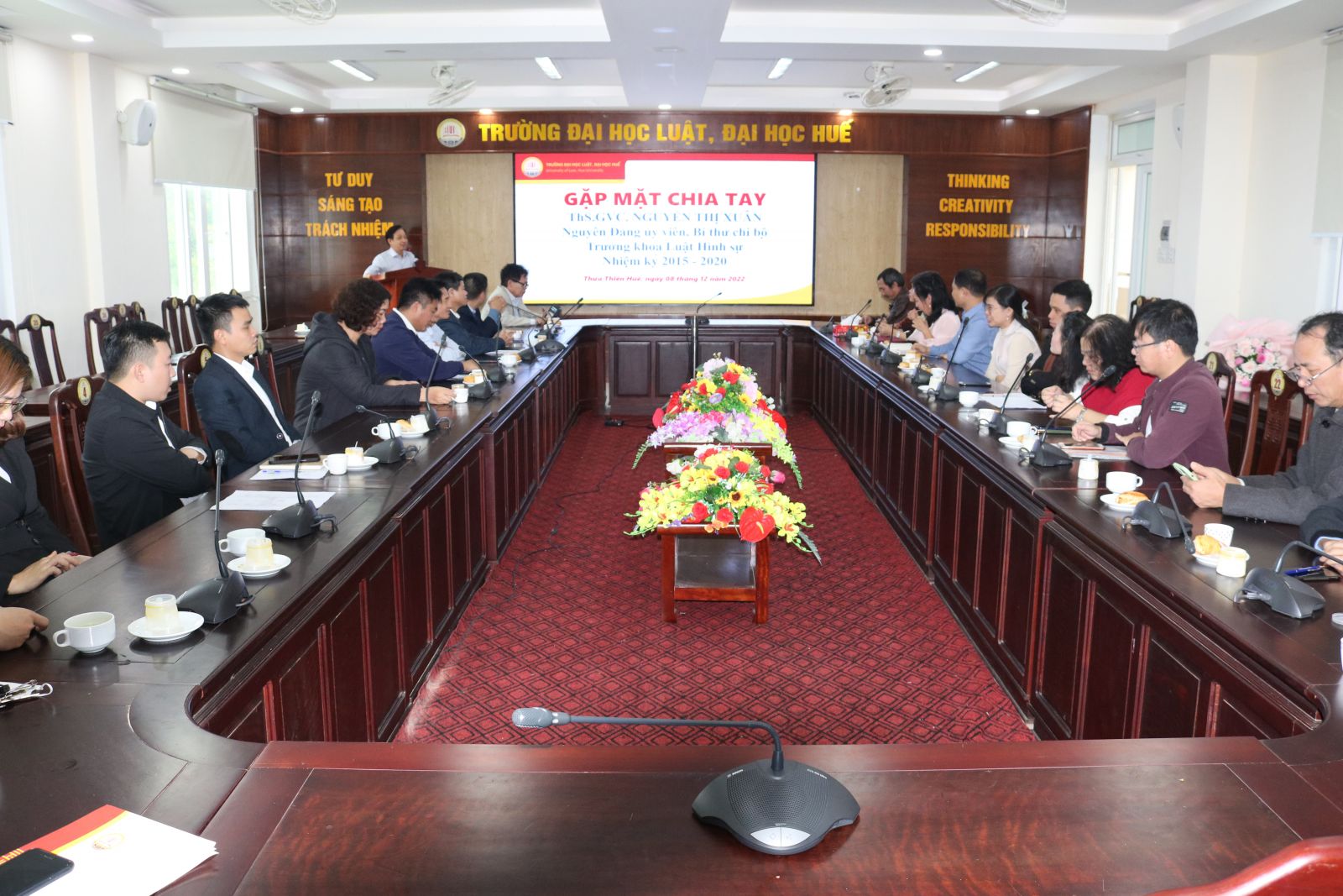 Ngày cập nhật: 09-12-2022Ngày 08/12/2022, Trường Đại học Luật, Đại học Huế tổ chức Lễ chia tay ThS.GVC.Nguyễn Thị Xuân, nguyên Đảng ủy viên, Bí thư chi bộ, Trưởng khoa Luật Hình sự, nhiệm kỳ 2015-2020, nghỉ hưu theo chế độ của Nhà nước.