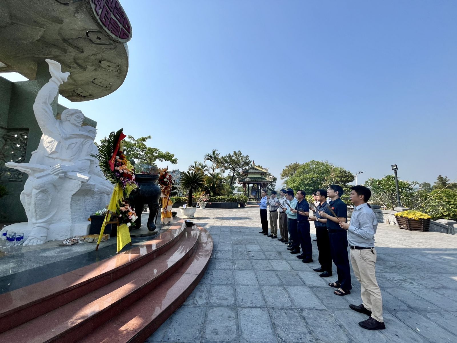 Trong không khí trang nghiêm tại Đài tưởng niệm liệt sỹ, các thành viên trong đoàn đã dành một phút mặc niệm bày tỏ bày tỏ niềm thành kính, biết ơn vô hạn đối với công lao to lớn của các Anh hùng Liệt sĩ.