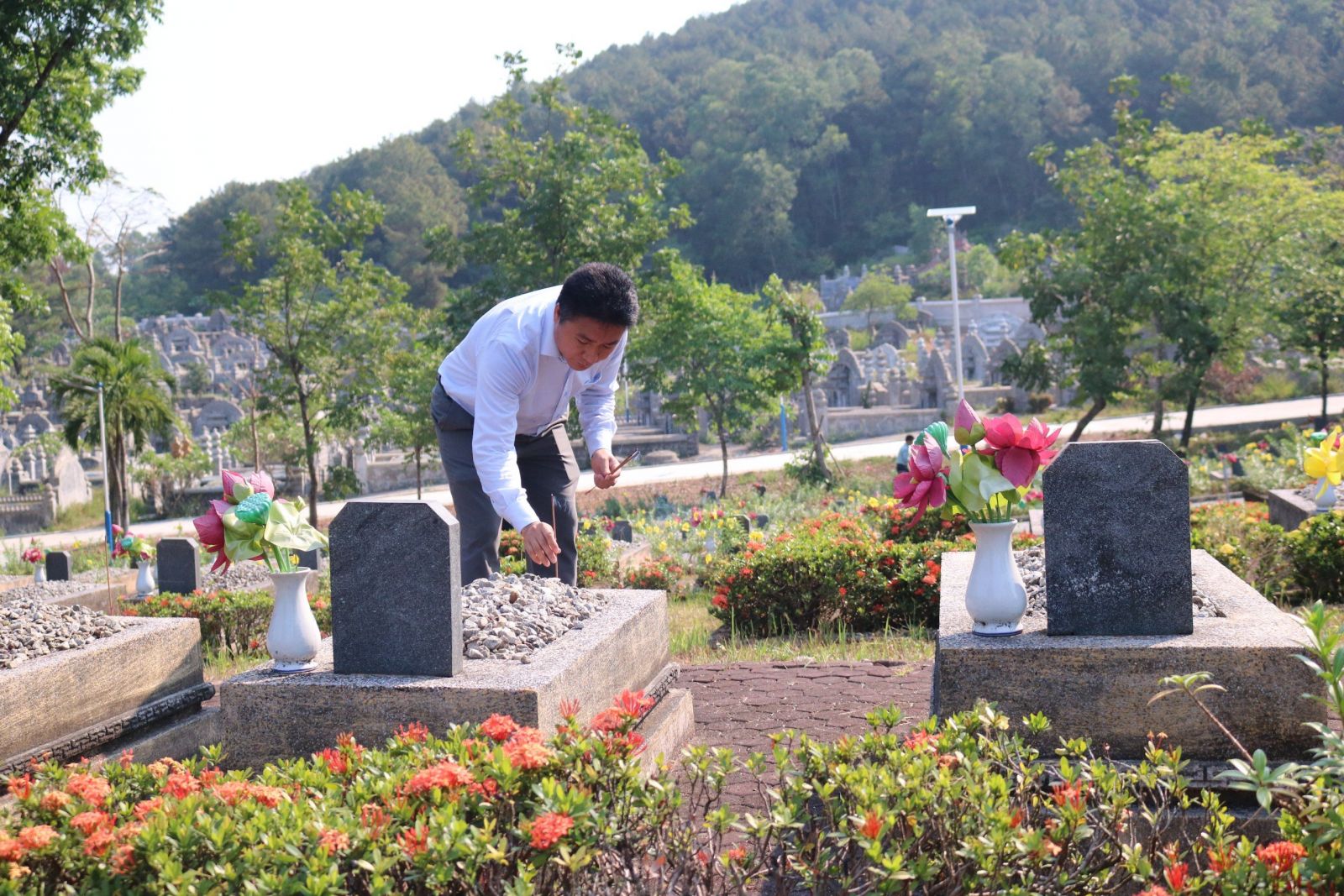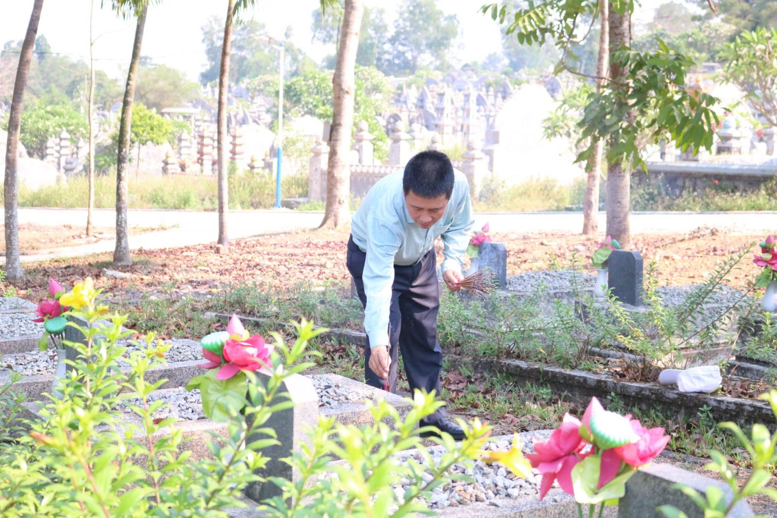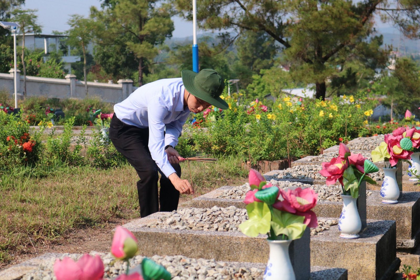 Sau phút mặc niệm, các thành viên trong đoàn đã thắp hương từng phần mộ liệt sỹ với lòng thành kính và tri ân sâu sắc các Anh hùng Liệt sĩ luôn tận trung với nước, tận hiếu với dân, cống hiến trọn đời mình vì độc lập tự do của Tổ quốc, vì hạnh phúc của Nhân dân.