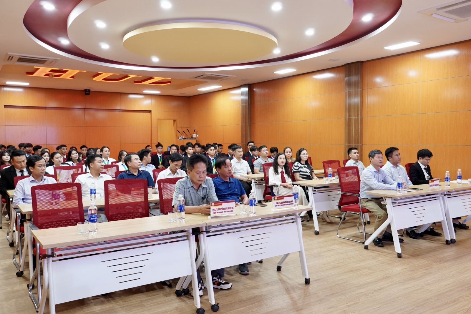 Tham dự buổi lễ có PGS.TS. Đoàn Đức Lương, Bí thư Đảng uỷ, Hiệu trưởng Nhà trường; PGS. TS. Nguyễn Duy Phương, Phó Bí thư Đảng uỷ, Phó Hiệu trưởng Nhà trường; Trưởng các đơn vị trực thuộc Nhà trường cùng toàn thể thành viên hai đội bóng đá nam và nữ đã mang về thành tích xuất sắc cho Nhà trường.