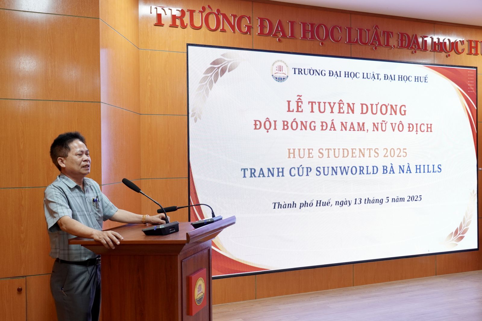 Ngày cập nhật: 13-05-2025Chiều ngày 13/5/2025, Trường Đại học Luật, Đại học Huế tổ chức Lễ tuyên dương và khen thưởng đội bóng đá Nam và Nữ của Nhà trường đã xuất sắc giành chức Vô địch tại Giải bóng đá Hue Students 2025- Tranh cúp Sunworld Bà Nà Hills