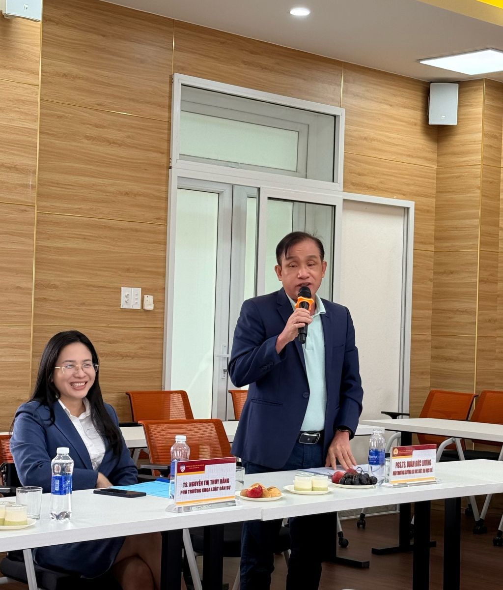 Hội nghị cũng vinh dự tiếp nhận các ý kiến chỉ đạo sâu sắc và những đề xuất xây dựng từ PGS.TS. Đoàn Đức Lương và ThS. Trần Cao Thành, góp phần định hướng hoàn thiện báo cáo, kế hoạch hoạt động năm học 2025–2026, cũng như các giải pháp nâng cao chất lượng đội ngũ giảng viên, hiệu quả giảng dạy, nghiên cứu khoa học và hỗ trợ người học.
