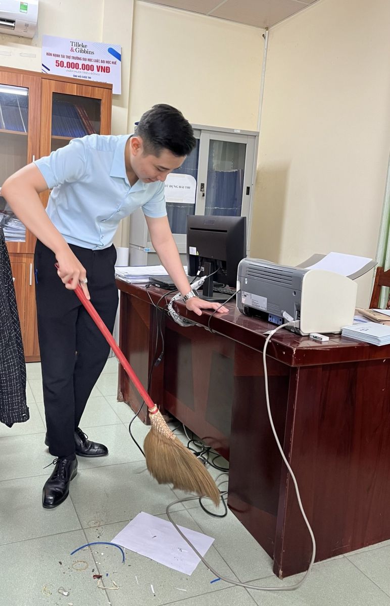 Hình ảnh dọn dẹp vệ sinh tại Văn phòng Khoa luật Dân sự