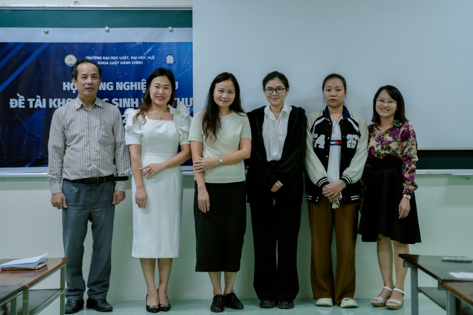 Tham gia buổi bảo vệ đề tài Nghiên cứu khoa học cấp trường của người học có: ThS.LS. Nguyễn Văn Phước - Trưởng văn phòng Luật sư Huế; TS. Lê Thị Nga - Trưởng khoa Luật Hành chính, TS. Đặng Công Cường - Phó Trưởng khoa Luật Hành chính, TS. Hà Lệ Thuỷ - Phó Trưởng khoa Luật Hình sự; ThS. Trần Việt Dũng, cùng các Giảng viên của Trường Đại học Luật, Đại học Huế và các Sinh viên có đề tài Nghiên cứu khoa học
