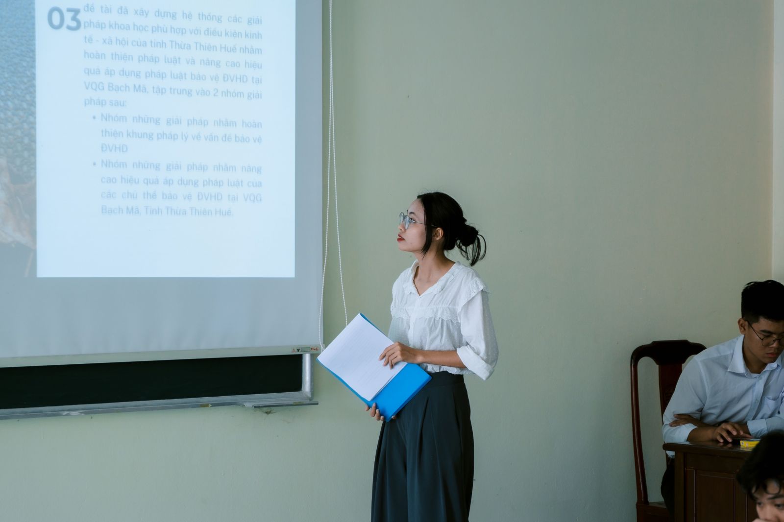2. “Pháp luật về bảo vệ động vật hoang dã qua thực tiễn tại Vườn Quốc gia Bạch Mã”, chủ nhiệm đề tài: Hoàng Thị Hà Linh