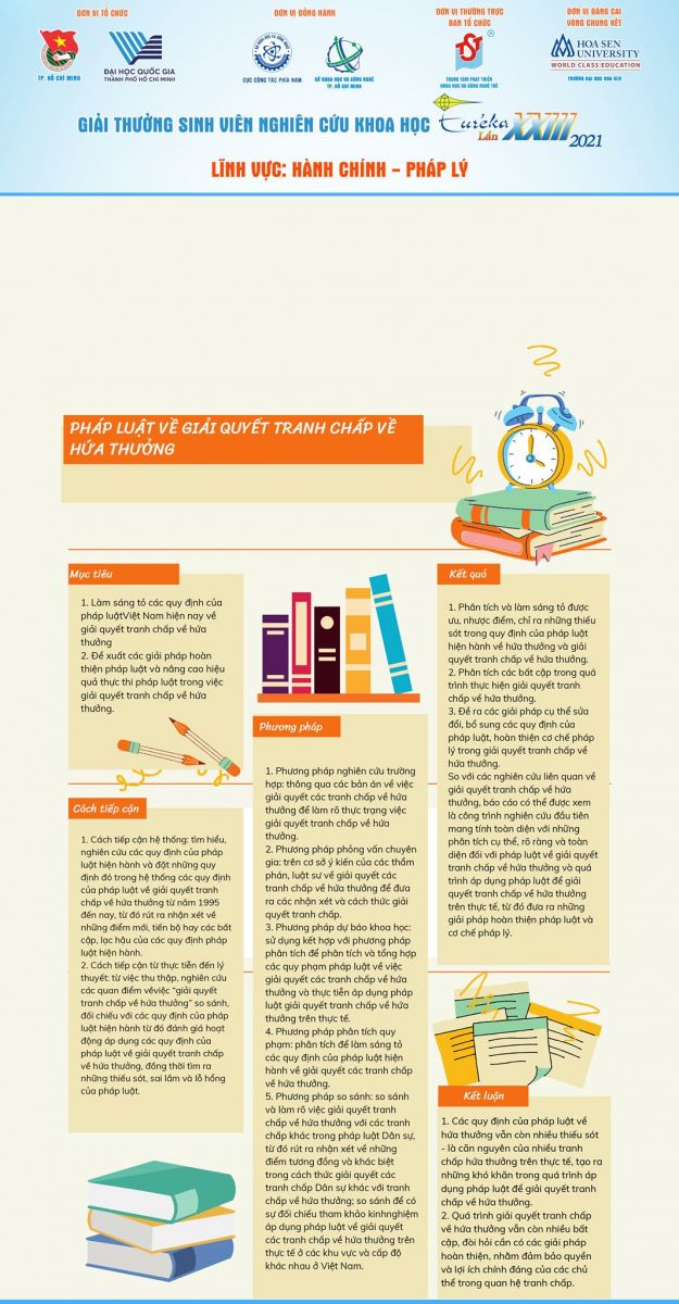 Đặc biệt, trong năm 2021, nhóm sinh viên khoa Luật Hành chính bao gồm: Tô Văn Việt, Phạm Thị My, Võ Thị Vân Trang đã tham gia Giải thưởng sinh viên nghiên cứu khóa học Euréka lần thứ 23 năm 2021 được tổ chức bởi Thành Đoàn – Đại học Quốc gia Hồ Chí Minh với đề tài Pháp Luật về Giải quyết Tranh chấp về hứa thưởng. Nhóm nghiên cứu đã xuất sắc lọt vào vòng chung kết trao giải.