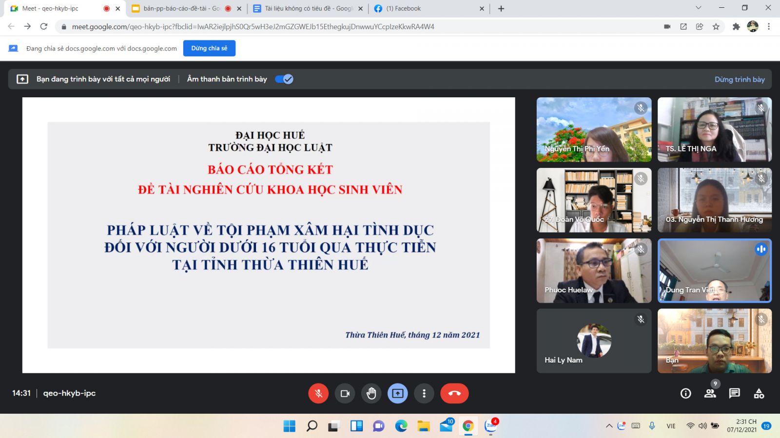 Ngày cập nhật: 31-12-2021Nghiên cứu khoa học là hoạt động thường niên của trường Đại học Luật, Đại học Huế, nhằm tạo sân chơi học thuật cho các Sinh viên. Trong năm học 2020 - 2021, mặc dù chịu ảnh hưởng nặng nề của dịch bệnh nhưng nghiên cứu khoa học vẫn là hoạt động thu hút số lượng lớn Sinh viên tham gia thử sức.