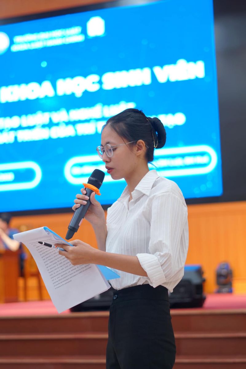 Hội thảo năm nay với chủ đề “Đào tạo Luật và nghề Luật trong sự phát triển của trí tuệ nhân tạo” đã có 4 bài tham luận xuất sắc được lựa chọn báo cáo tại Hội nghị gồm: Tham luận 1: Ứng dụng của trí tuệ nhân tạo cho học tập và nghiên cứu trong ngành luật của tác giả Trần Thị Hương Giang; Tham luận 2: Sự phát triển của cộng đồng người đồng tính nhìn từ góc độ bùng nổ Internet- AI của nhóm tác giả Lê Đình Bảo Ngân, Huỳnh Thuỳ Trang; Tham luận 3: Tác động của trí tuệ nhân tạo đối với nghề Luật sư tại Việt Nam của nhóm tác giả Lê Ngọc Huyền, Nguyễn Thị Tâm Như; Tham luận 4: Ứng dụng khoa học công nghệ trong việc thực hiện pháp luật về bảo vệ động vật hoang dã của nhóm tác giả Hoàng Thị Hà Linh, Nguyễn Lê Việt Hoàng, Võ Đình Huy.