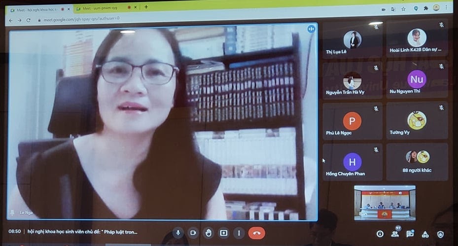 Ngày cập nhật: 28-09-2021Ngày 26/9/2021, Khoa Luật Hành chính, Trường Đại học Luật, Đại học Huế tổ chức thành công Hội nghị khoa học sinh viên cấp Khoa với chủ đề Pháp luật trong bối cảnh thực thi Hiệp định FTA thế hệ mới: thách thức và xu hướng phát triển” theo hình thức Online