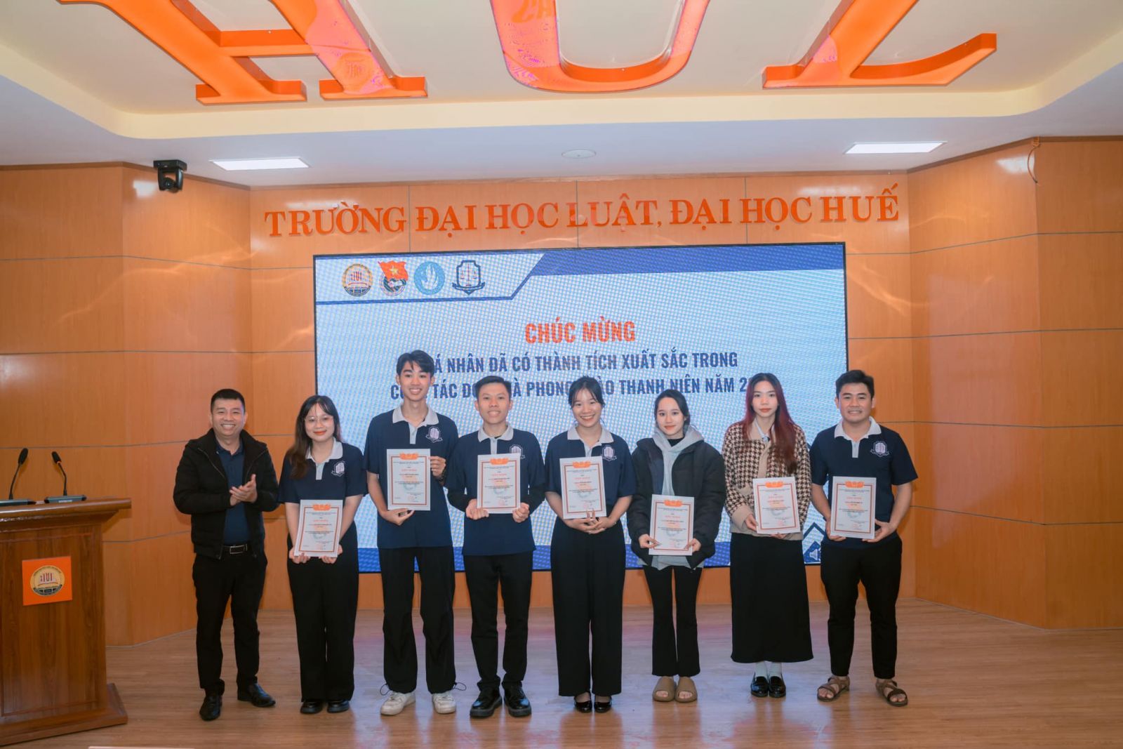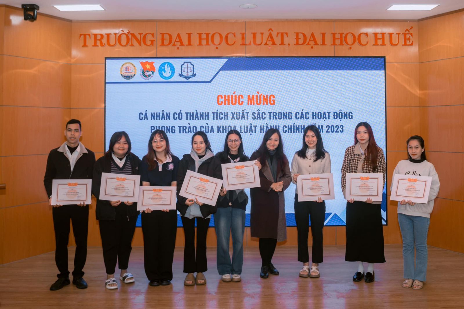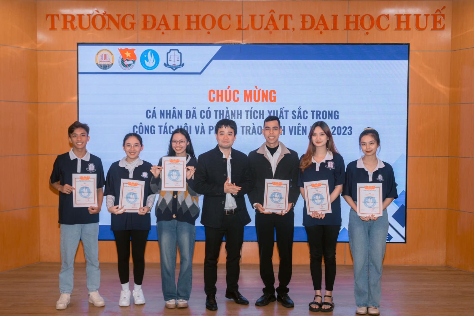 Tại Chương trình đã trao giấy khen, giấy chứng nhận cho các cá nhân có thành tích xuất sắc trong công tác tổ chức Giải bóng và công tác Đoàn- Hội Khoa Luật Hành chính trong thời gian qua.
