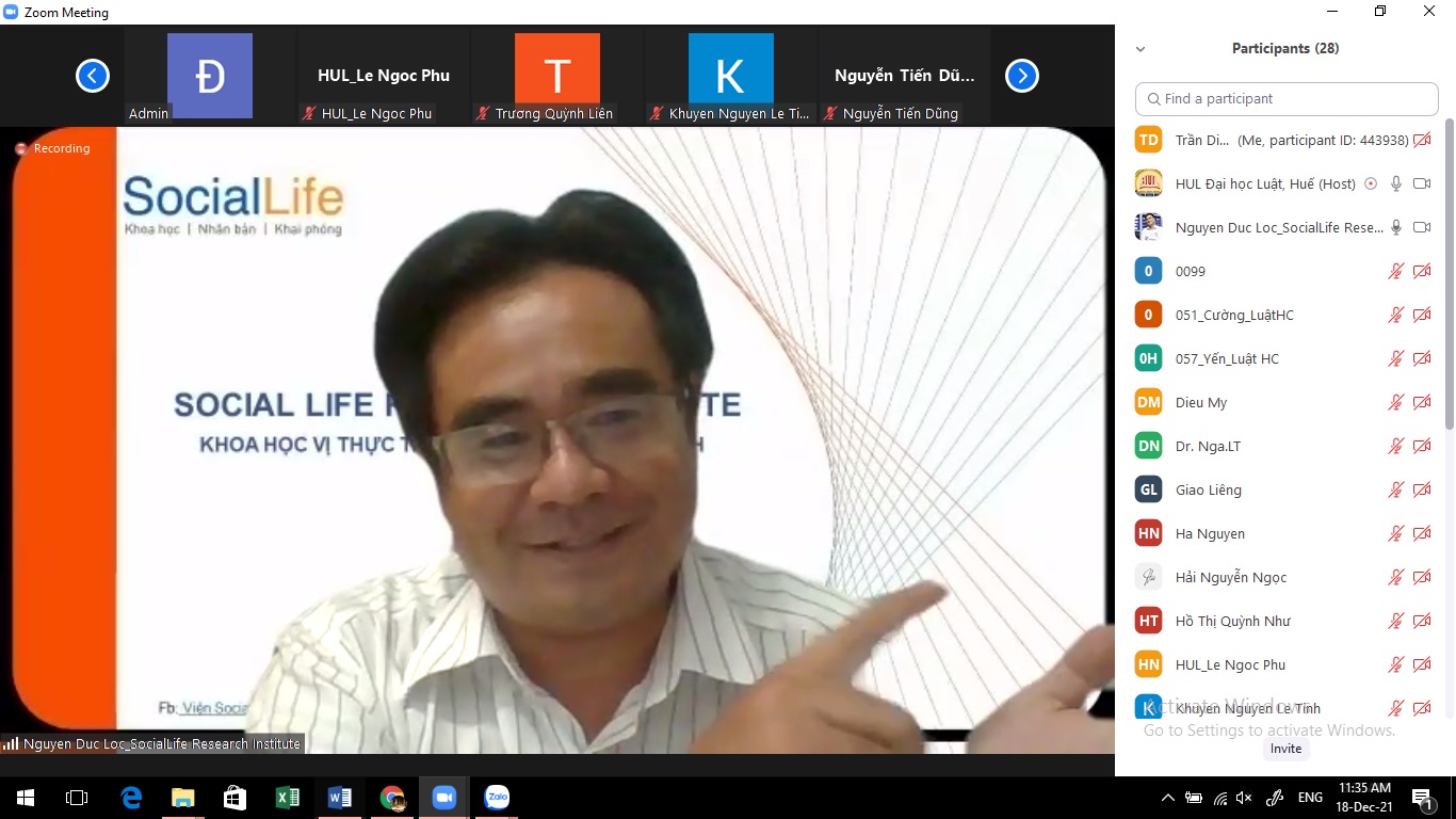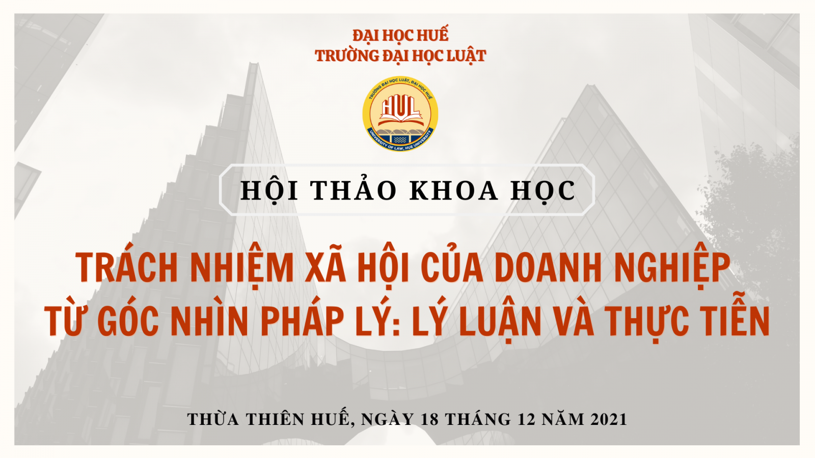 Hội thảo khoa học với chủ đề “Trách nhiệm xã hội của doanh nghiệp từ góc nhìn pháp lý: Lý luận và thực tiễn” đã thành công tốt đẹp vào ngày 18/12 vừa qua. Do tình hình dịch diễn biến phức tạp ở nhiều địa phương, Hội thảo được tổ chức dưới 02 hình thức: trực tiếp tại Trường Đại học Luật, Đại học Huế và kết nối trực tuyến với các chuyên gia từ các tổ chức, đơn vị nghiên cứu trên toàn quốc.