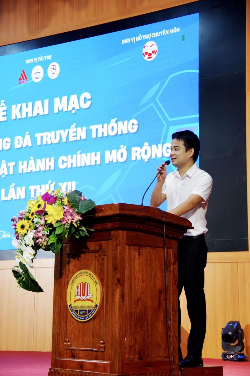 Th.S Lê Ngọc Phú - Trưởng Ban tổ chức giải đã tuyên bố khai mạc Giải. Đồng thời, BTC đã gửi lời cảm ơn đến sự quan tâm, tạo điều kiện của Đoàn trường ĐH Luật, Khoa Luật Hành chính và sự hỗ trợ không nhỏ đến từ các nhà tài trợ, các cố vấn, các LCĐ bạn đã góp phần tạo nên sân chơi ý nghĩa dành cho các bạn sinh viên.