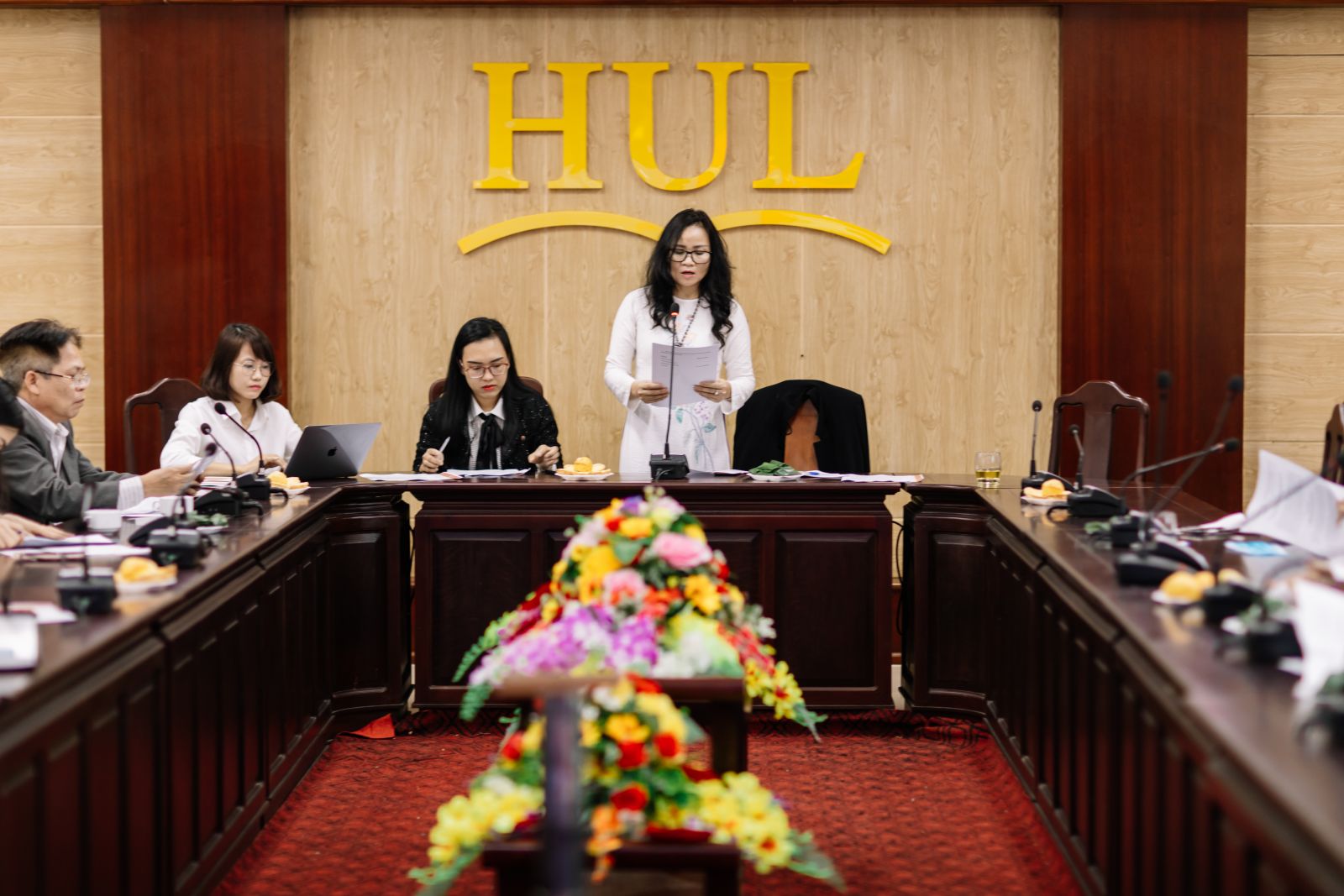 Hội nghị Viên chức, người lao động năm học 2021 - 2022 đã diễn ra sôi nổi với nhiều ý kiến tích cực. Mở đầu hội nghị, TS. Lê Thị Nga trình bày bản báo cáo tổng kết hoạt động của Khoa Luật Hành chính năm học, nêu lên những ưu điểm và hạn chế của Khoa trong năm học 2020 - 2021. Tại Hội nghị, PGS. TS Nguyễn Duy Phương và TS. Đào Mộng Điệp có góp ý cho bản báo cáo và phương hướng hoạt động trên các phương diện tổ chức, hoạt động và hoạt động Công đoàn của Khoa Luật Hành chính.