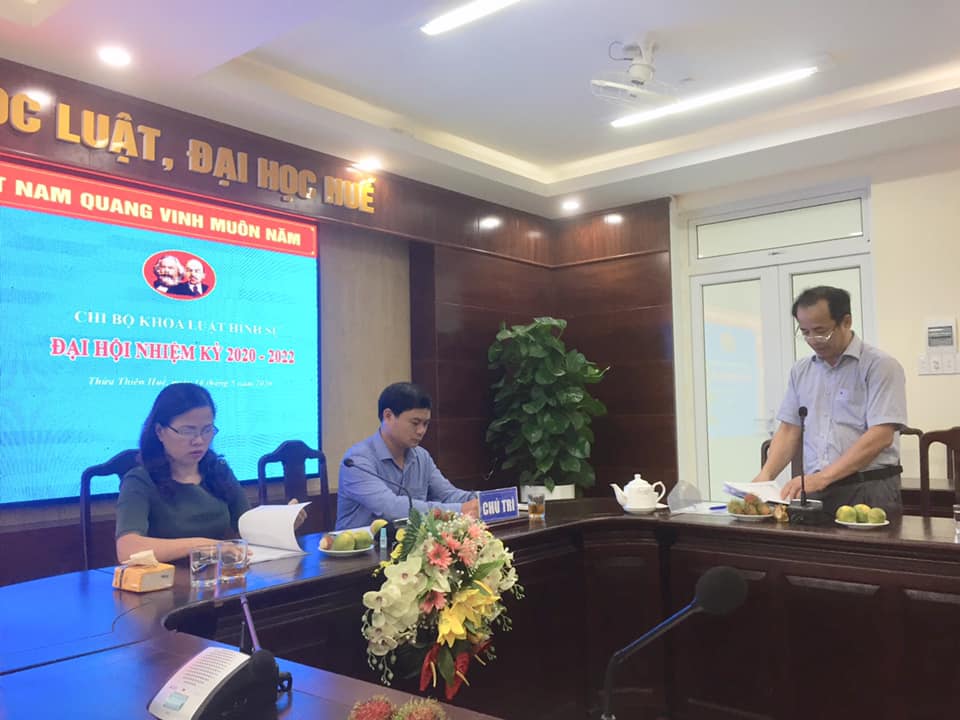Vào lúc 14h ngày 14/5/2020, Chi bộ Khoa Luật Hình sự đã tổ chức Đại hội Chi bộ nhiệm kỳ 2020 -2022. Đại hội vinh dự được đón tiếp đồng chí Trần Việt Dũng, Phó Bí thư Đảng ủy – Phó Hiệu trưởng Trường Đại học Luật Huế, về phía Chi bộ có đồng chí Nguyễn Thị Xuân, Bí thư Chi bộ - Trưởng Khoa Luật hình sự cùng đông đủ các đồng chí Đảng viên trong Chi bộ Khoa Luật hình sự.
