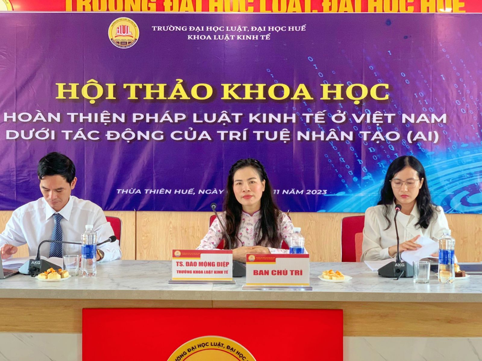 Ngày cập nhật: 01-11-2023Vào lúc 8h30 Ngày 01/11/2023 tại Phòng Truyền thông, tầng 4, nhà A1 Trường Đại học Luật, Đại học Huế. Khoa Luật Kinh Tế đã tổ chức thành công Hội thảo cấp Khoa với chủ đề: “Hoàn thiện pháp luật kinh tế ở Việt Nam dưới tác động của AI” theo hai hình thức trực tiếp và trực tuyến trên nền tảng Googlemeet. Nhằm mục đích tạo diễn đàn để các nhà khoa học, giảng viên, chuyên gia pháp lý, đại diện các doanh nghiệp, cơ quan quản lý nhà nước và các tổ chức, cá nhân trao đổi, chia sẻ kiến thức, kinh nghiệm thực tiễn liên quan đến các vấn đề hoàn thiện pháp luật kinh tế ở Việt Nam hiện nay.