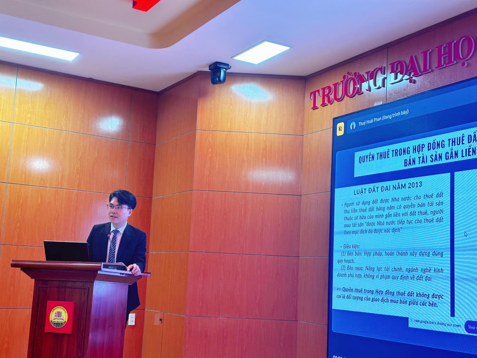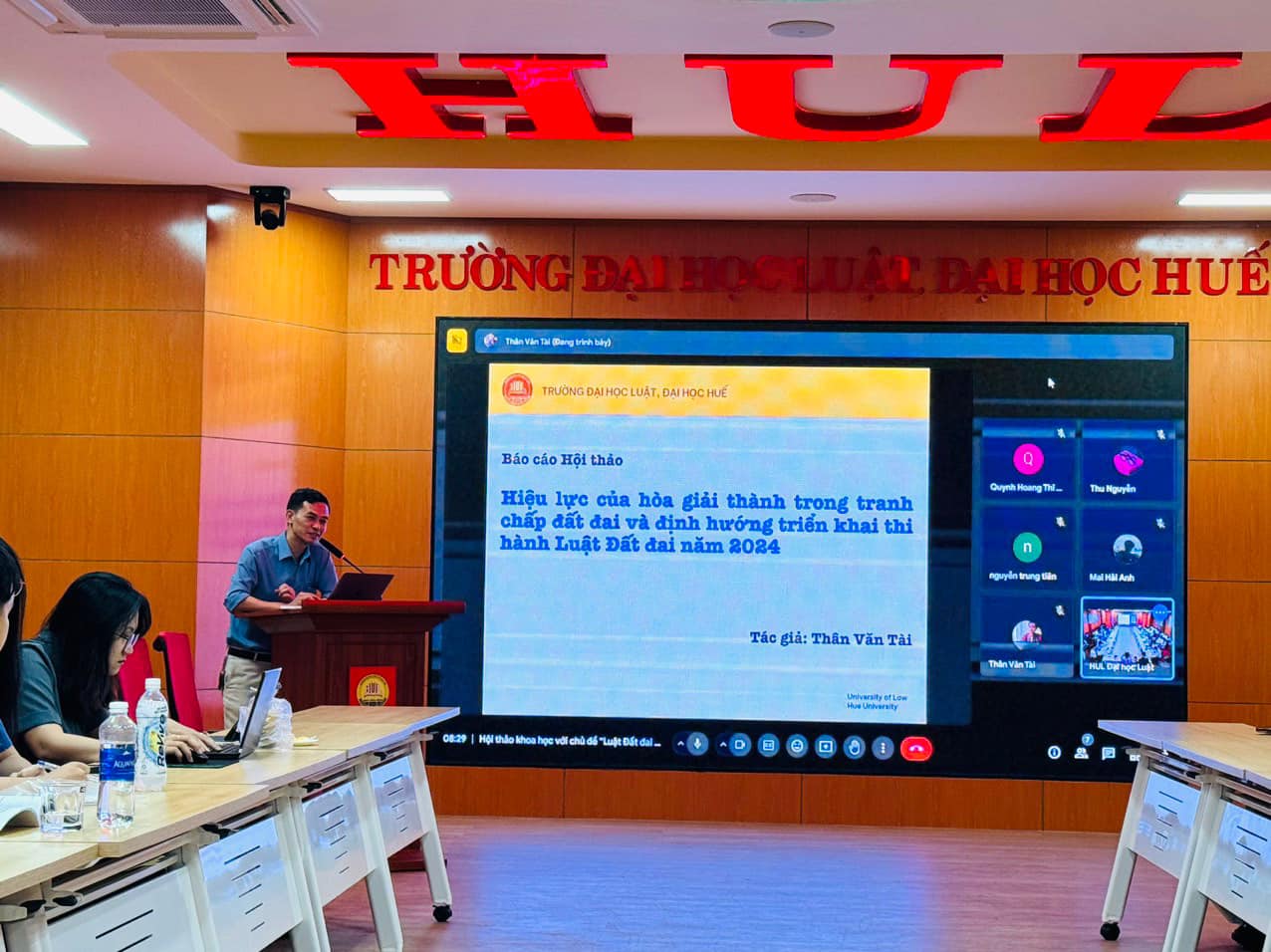 1. ThS.NCS Thân Văn Tài đã trình bày bài nghiên cứu “Hiệu lực của hòa giải thành trong tranh chấp đất đai và hướng triển khai thi hành Luật Đất Đai năm 2024”