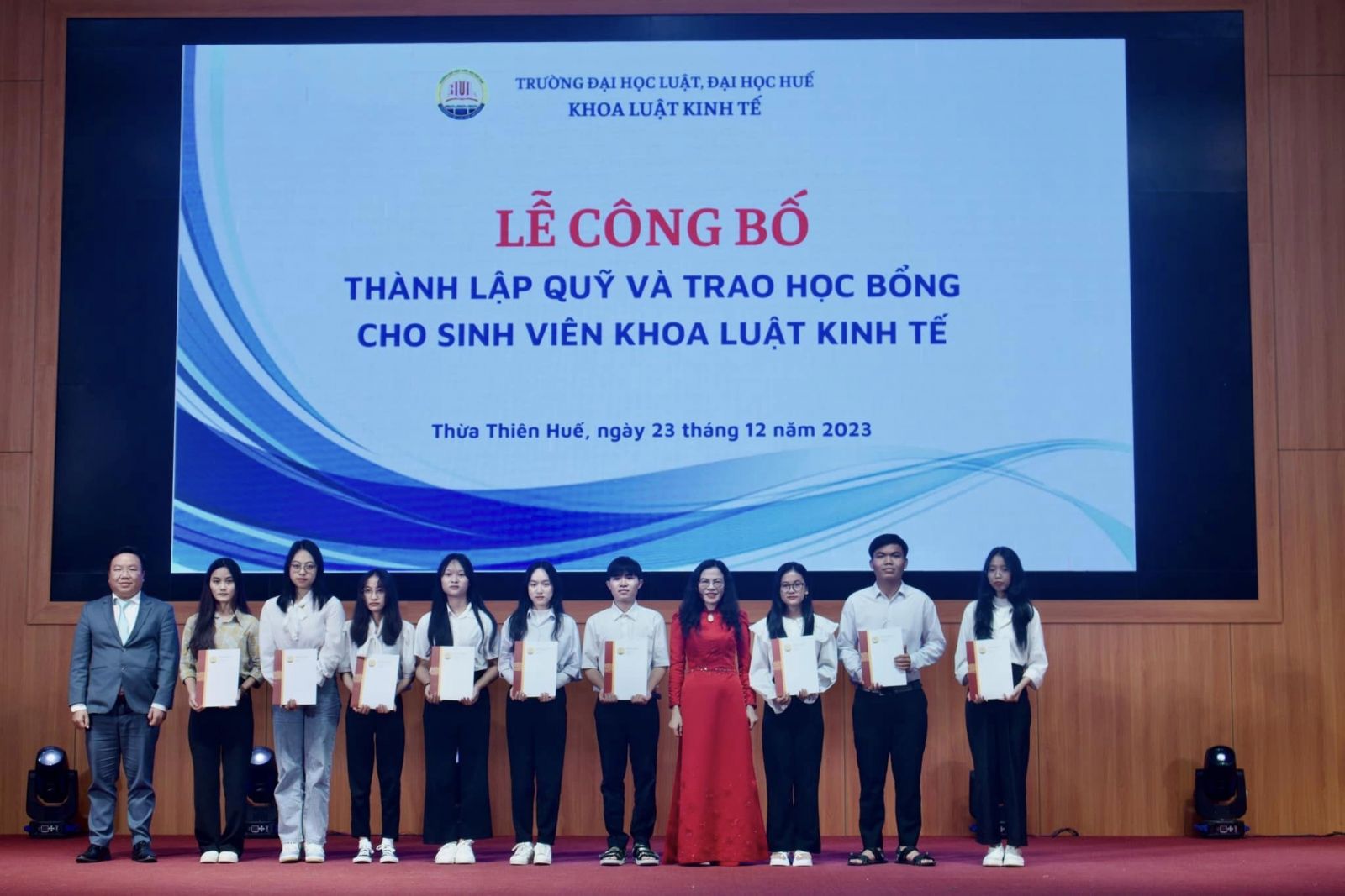 Bên cạnh đó, trong chương trình này Khoa Luật Kinh tế long trọng công bố và trao 61 suất học bổng cho sinh viên có thành tích học tập xuất sắc và sinh viên có hoàn cảnh khó khăn của Khoa Luật Kinh tế. Mỗi suất học bổng trị giá 1 triệu đồng, nhằm hỗ trợ và động viên sinh viên phấn đấu vươn lên đạt thành tích cao trong học tập và rèn luyện.