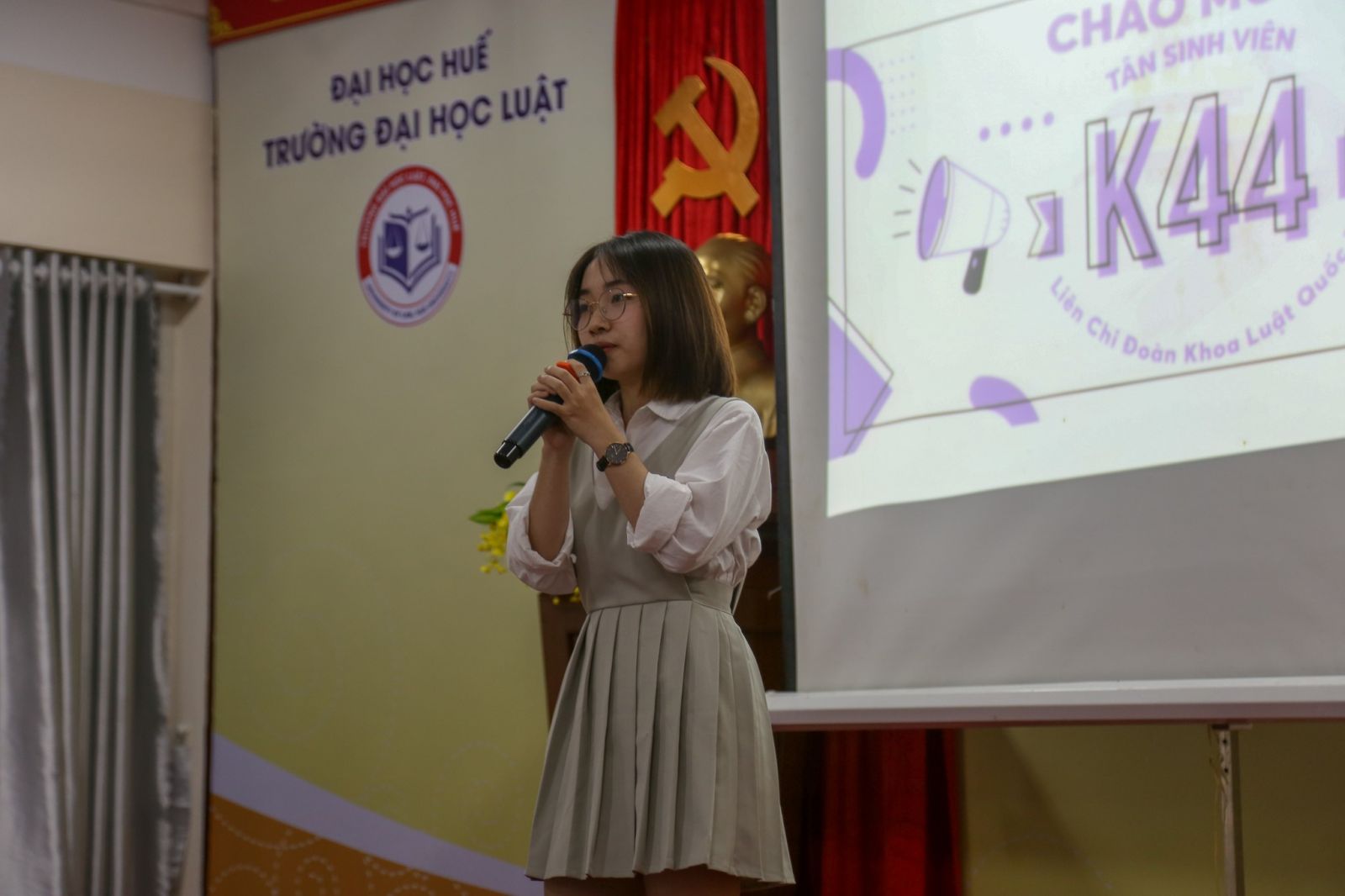 Trong không khí sôi nổi của chương trình chào tân sinh viên K44, với sự hiện diện của TS. Nguyễn Thị Hồng Trinh, Trưởng Khoa Luật Quốc tế, ThS. Nguyễn Thị Hà, Nguyên Trưởng Khoa Luật Quốc tế, TS. Hồ Nhân Ái - Giảng viên, ThS. Trần Thị Diệu Hương - Giảng viên, ThS. Nguyễn Thị Hạnh - Bí thư LCĐ Khoa Luật Quốc tế, CN. Bùi Thị Quỳnh Trang - Phụ trách khối lớp K44, ThS. Lê Khắc Đại - Giảng viên Khoa Luật Quốc tế, Ban chấp hành Khoa Luật Quốc tế, và đặc biệt là hơn 100 Tân sinh viên khóa K44 của Khoa Luật Quốc tế.