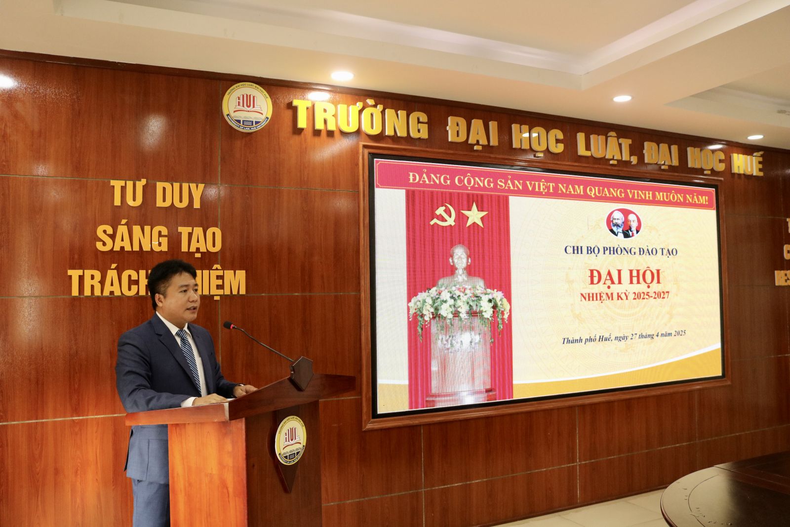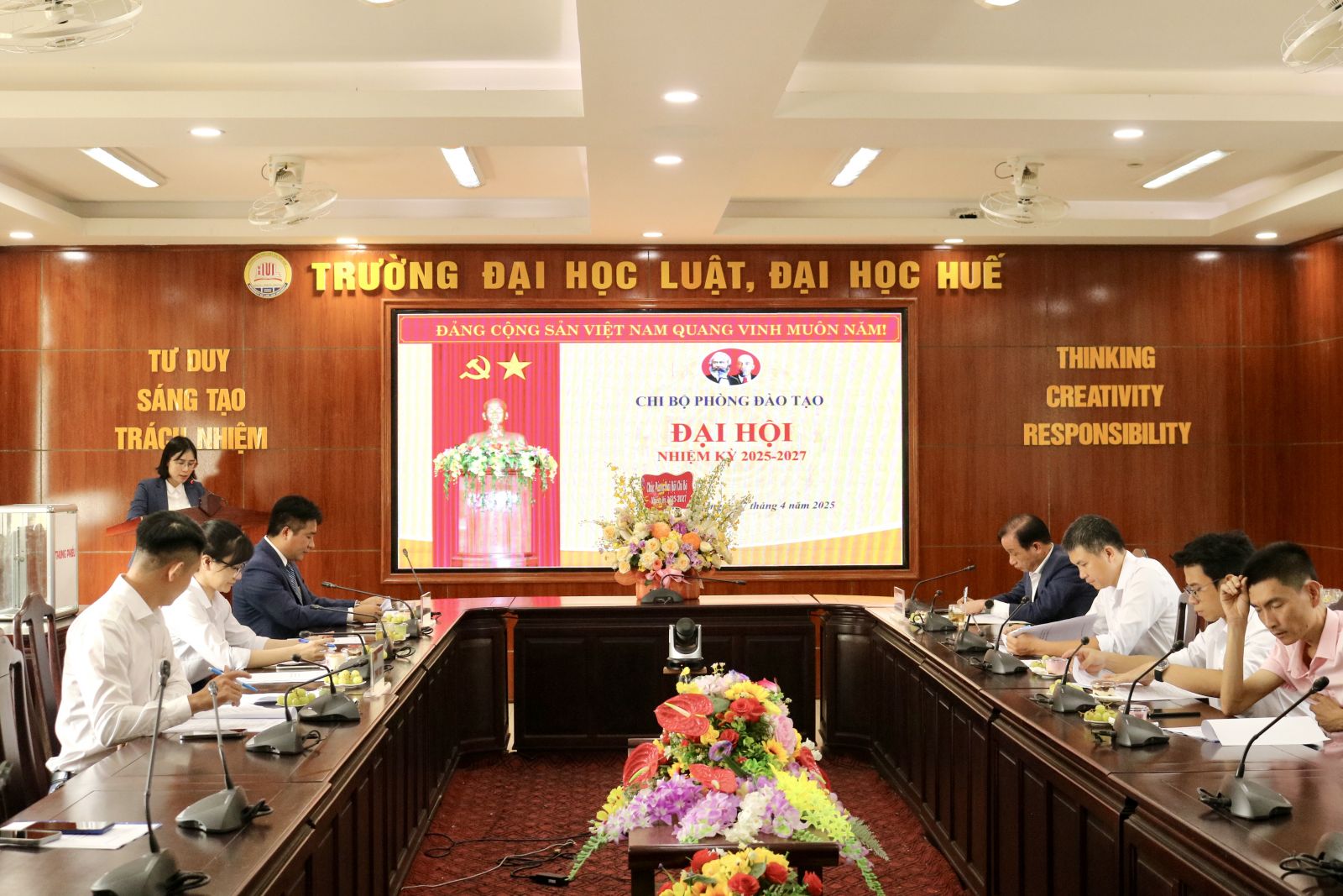 Ngày cập nhật: 06-05-2025Chiều ngày 27/4/2025, Chi bộ Phòng Đào tạo, Trường Đại học Luật, Đại học Huế đã tổ chức thành công Đại hội Chi bộ nhiệm kỳ 2025–2027 với sự tham dự đầy đủ của toàn thể đảng viên. Đây là sự kiện chính trị quan trọng nhằm đánh giá kết quả hoạt động trong nhiệm kỳ 2022–2025 và đề ra phương hướng, nhiệm vụ cho nhiệm kỳ tới.
