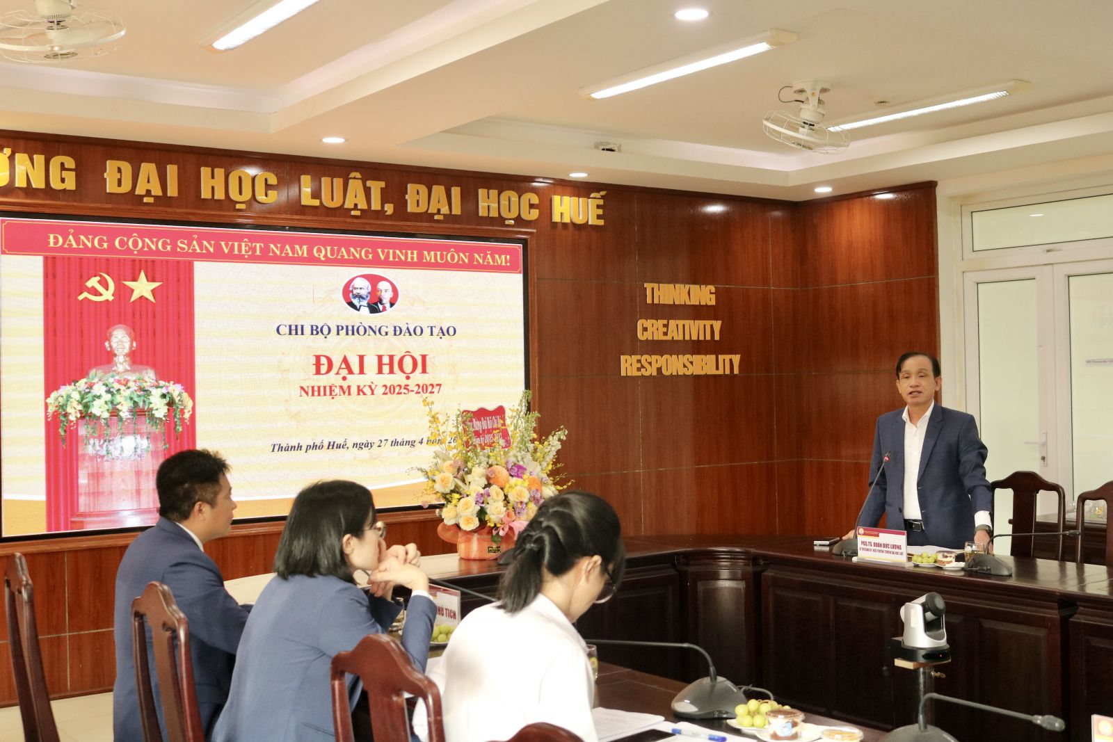 Đại hội đã nghe phát biểu chỉ đạo từ PGS.TS Đoàn Đức Lương – Bí thư Đảng ủy, Hiệu trưởng Nhà trường, ghi nhận những đóng góp tích cực của Chi bộ Phòng Đào tạo trong công tác chuyên môn và xây dựng tổ chức Đảng.
