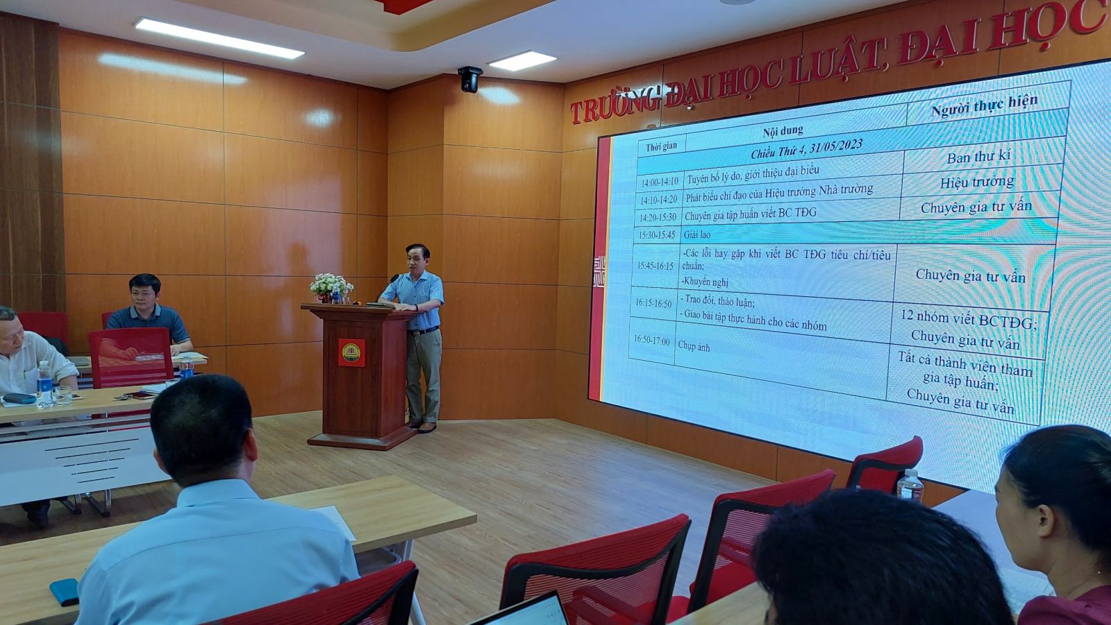 Ngày cập nhật: 31-05-2023Ngày 31/5/2023 Trường Đại học Luật đã tổ chức Hội thảo tập huấn viết báo cáo tự đánh giá chất lượng cơ sở giáo dục chu kỳ 2 cho các nhóm công tác. Đây là một trong những buổi tập huấn hữu ích nằm trong chuỗi tập huấn mà Nhà trường triển khai trong suốt quá trình tự đánh giá.