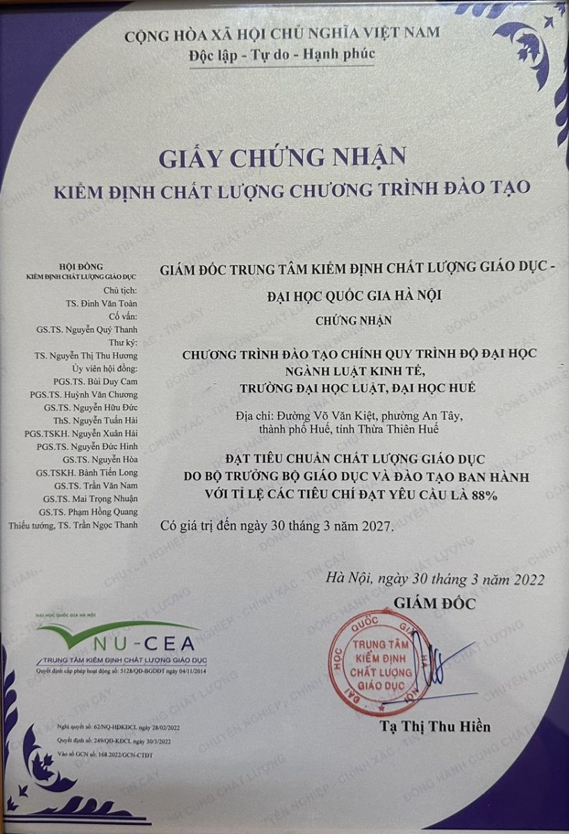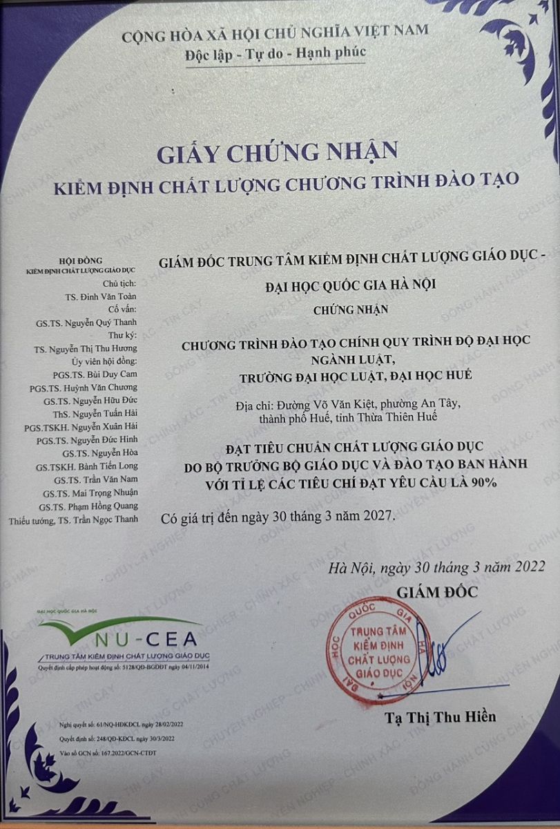 Trường Đại học Luật được công nhận 02 Chương trình đào tạo ngành Luật và ngành Luật Kinh tế Đạt chuẩn chất lượng giáo dục