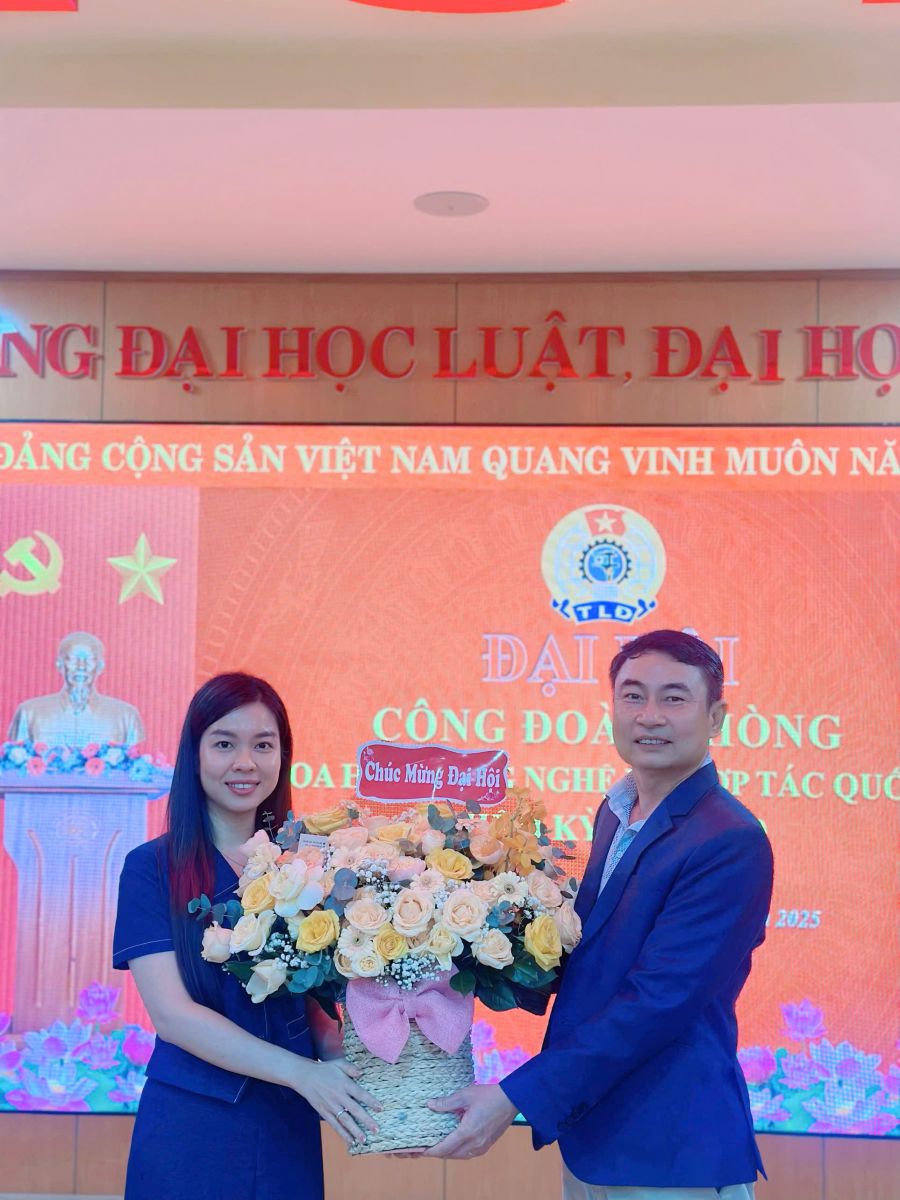 Phát biểu chỉ đạo Đại hội, thay mặt Ban Thường vụ Công đoàn Trường Đại học Luật, ThS. Trần Cao Thành biểu dương và chúc mừng những thành tích của tập thể, cán bộ, Công đoàn viên phòng Khoa học công nghệ & Hợp tác quốc tế đã đạt được. Thời gian qua, Công đoàn phòng Khoa học công nghệ & Hợp tác quốc tế đã làm tốt công tác tuyên truyền, giáo dục về chủ trương của Đảng, chính sách, pháp luật của Nhà nước, các nội quy, quy định của cơ quan; tuyên truyền đẩy mạnh học tập tư tưởng, đạo đức, phong cách Hồ Chí Minh; Tham gia đề xuất, góp ý nhiều nội dung quan trọng; Làm tốt công tác chăm lo đời sống vật chất, tinh thần cho đoàn viên trong đơn vị; Tham gia hưởng ứng tích cực các cuộc thi, tham dự các hội nghị, các buổi sinh hoạt chuyên đề do Công đoàn Trường triển khai trong giai đoạn 2023 - 2025. Trong nhiệm kỳ mới 2025 - 2030, ThS. Trần Cao Thành đề nghị Công đoàn Khoa học công nghệ & Hợp tác quốc tế viên cần tiếp tục đẩy mạnh công tác tuyên truyền về đường lối, chủ trương của Đảng, chính sách pháp luật của Nhà nước cho đoàn viên. Chú trọng việc thực hiện các chuẩn mực đạo đức của cán bộ, đảng viên trong đơn vị; Sâu sát, khoa học; Tận tụy, liêm khiết; Đoàn kế, gương mẫu”. Đồng thời, tiếp tục thực hiện tốt quy chế dân chủ trong cơ quan, đơn vị, tham gia giám sát việc thực hiện các chế độ, chính sách liên quan đến đoàn viên và người lao động. Thực hiện tốt chức năng đại diện chăm lo, bảo vệ quyền và lợi ích hợp pháp, chính đáng của đoàn viên… Đẩy mạnh các phong trào thi đua và tham gia các hoạt động do tổ chức Công đoàn phát động để góp phần động viên công đoàn phấn đấu hoàn thành xuất sắc nhiệm vụ chính trị của cơ quan, đơn vị.