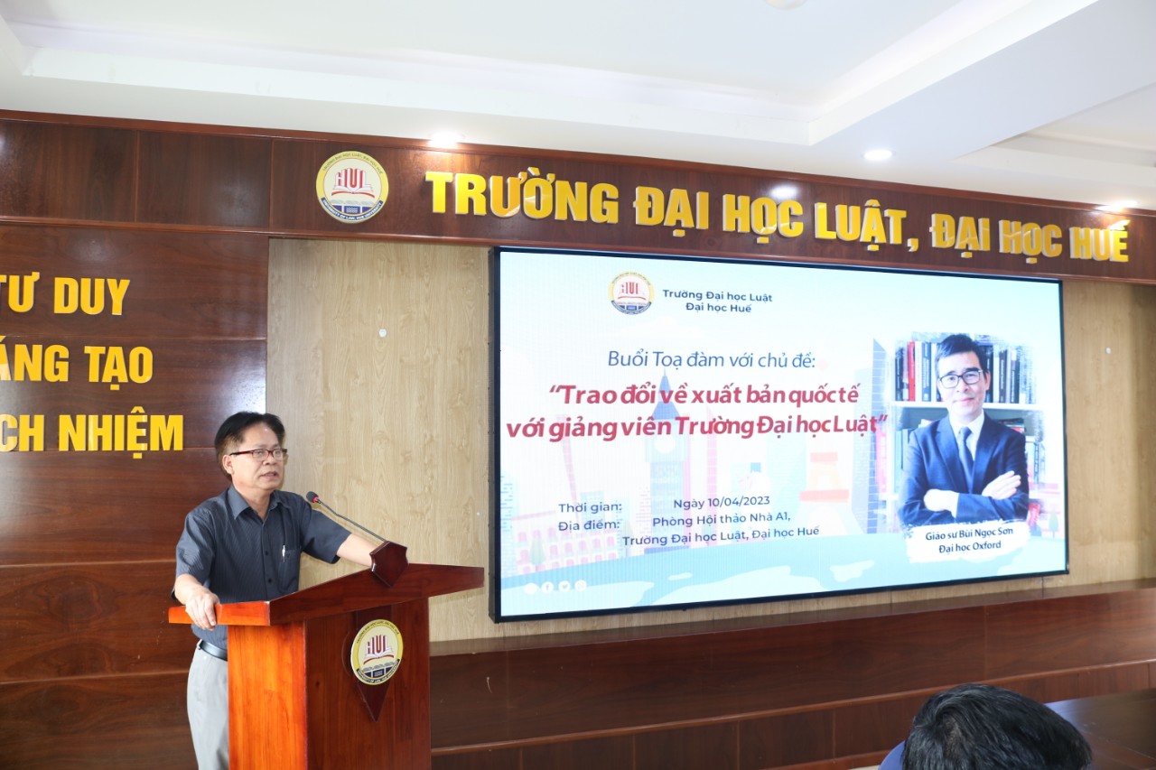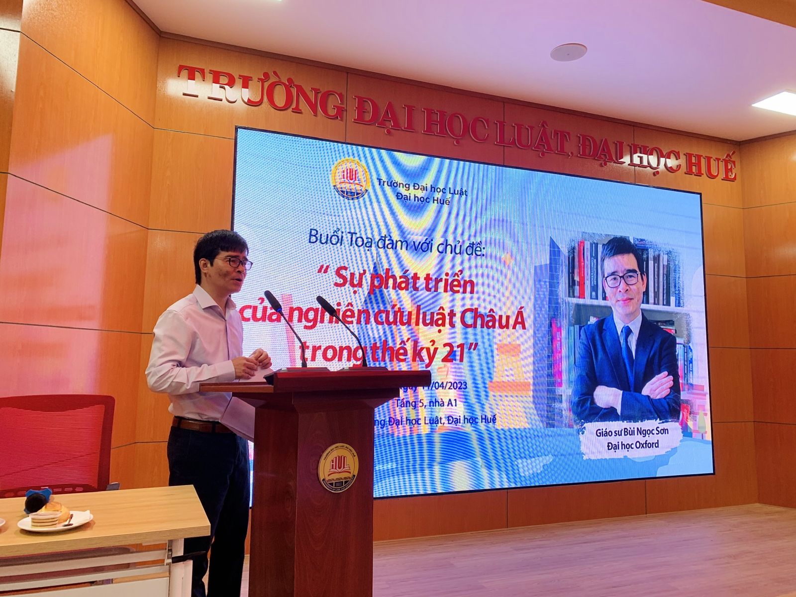 Trong thời gian từ ngày 09-12/4/2023, GS.TS. Bùi Ngọc Sơn, Giáo sư trong lĩnh vực Luật Châu Á tại Khoa Luật, Đại học Oxford, và là nghiên cứu viên của Trường St Hugh, Đại học Oxford  đến thăm và làm việc với Trường Đại học Luật, Đại học Huế về nội dung: “Trao đổi về xuất bản quốc tế - Sự phát triển của nghiên cứu Luật châu Á trong thế kỷ 21” cho giảng viên Trường Đại học Luật, Đại học Huế”.