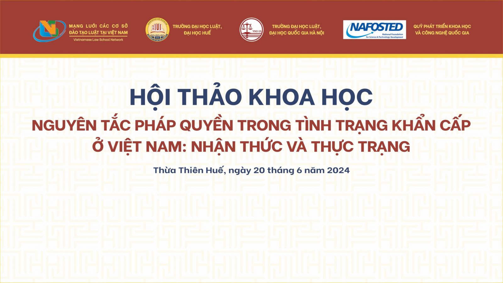 Trong bối cảnh đó, Trường Đại học Luật, Đại học Huế và Trường Đại học Luật, Đại học Quốc gia Hà Nội đồng phối hợp tổ chức Hội thảo “Nguyên tắc pháp quyền trong tình trạng khẩn cấp ở Việt Nam: Nhận thức và thực trạng” trong khuôn khổ hợp tác giữa hai đơn vị