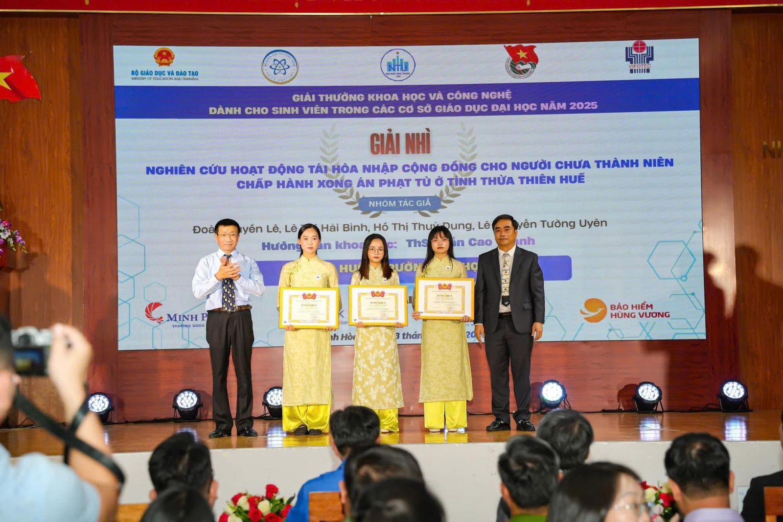 Với những kết quả nghiên cứu mang tính học thuật, thực tiễn và đóng góp ý nghĩa cho cộng đồng khoa học, nhóm sinh viên Trường Đại học Luật, Đại học Huế đã xuất sắc đạt Giải Nhì tại Giải thưởng Khoa học và Công nghệ dành cho sinh viên trong cơ sở giáo dục đại học năm 2025 – một trong những giải thưởng uy tín tôn vinh các công trình nghiên cứu tiêu biểu của sinh viên trên toàn quốc.