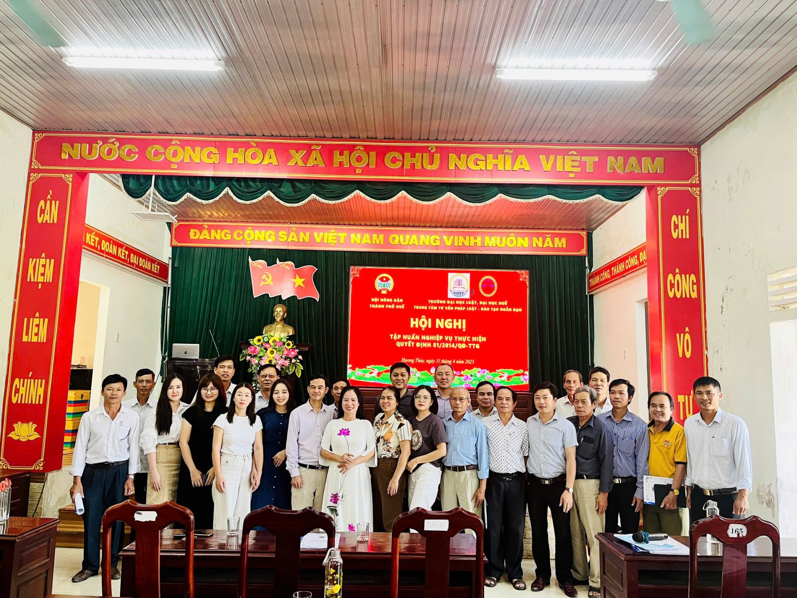 Tham dự chương trình tư vấn có: TS. Lê Thị Hải Ngọc, Giám đốc Trung tâm Tư vấn pháp luật - Đào tạo ngắn hạn, Trường Đại học Luật, Đại học Huế; ThS. NCS. Nguyễn Ngọc Huy, Phó giám đốc Trung tâm; Ông Phạm Anh Vũ, cán bộ Hội Nông dân thành phố Huế; Báo cáo viên tại chương trình ThS. NCS. Thân Văn Tài, Giảng viên Luật đất đai, Trường Đại học Luật, Đại học Huế cùng hơn 50 hoà giải viên tại thị xã thị xã Hương Thủy, TP. Huế và cán bộ, giảng viên Trung tâm.