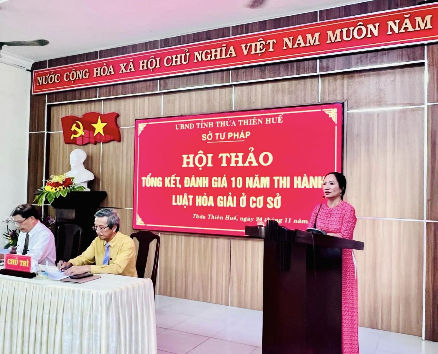 Ngày cập nhật: 25-11-2023Sáng ngày 24/11/2023, TS. Lê Thị Hải Ngọc, Giám đốc Trung tâm Tư vấn pháp luật – Đào tạo ngắn hạn tham dự Hội thảo Tổng kết, đánh giá 10 năm thi hành Luật Hòa giải ở cơ sở tại Thừa Thiên Huế năm 2023 do Sở Tư pháp tỉnh Thừa Thiên Huế tổ chức.