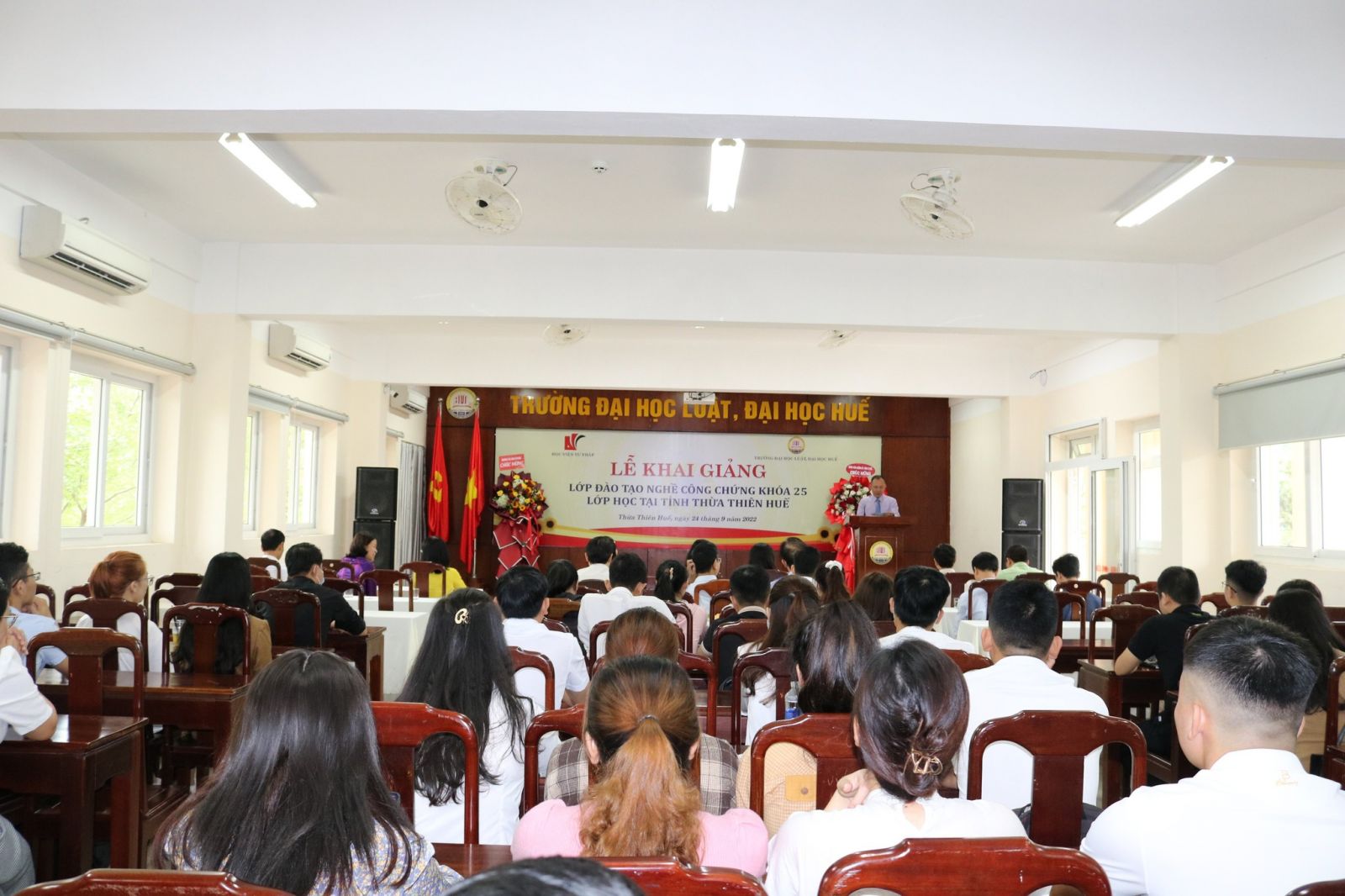 Ngày cập nhật: 27-09-2022Sáng ngày 24/9/2022 Trường Đại học Luật, Đại học Huế giao cho Trung tâm Tư vấn pháp luật và Đào tạo ngắn hạn phối hợp với Học viện Tư pháp tổ chức Lễ Khai giảng Lớp Đào tạo nghề Công chứng khoá 25 tại tỉnh Thừa Thiên Huế.