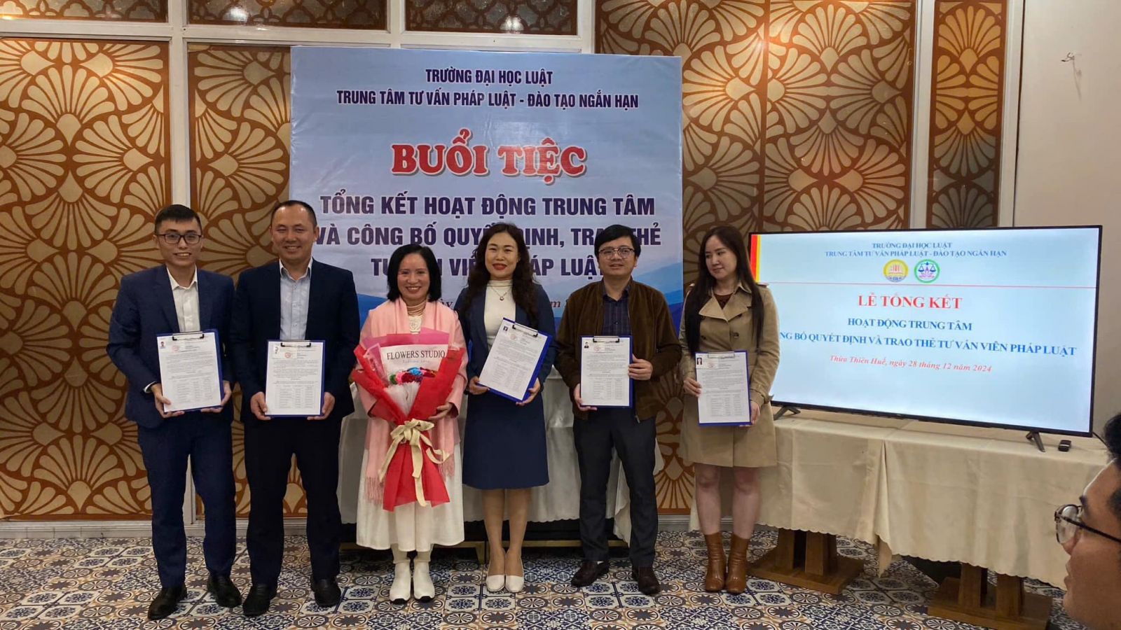 Ngày 28 tháng 12 năm 2024, Trung tâm Tư vấn pháp luật & Đào tạo ngắn hạn, Trường Đại học Luật, Đại học Huế đã tổ chức thành công buổi Lễ Tổng kết hoạt động Trung tâm và Công bố quyết định, trao thẻ tư vấn viên pháp luật. Sự kiện này không chỉ đánh dấu một năm hoạt động tích cực của Trung tâm mà còn đồng thời là dịp để chúng ta cùng nhau nhìn lại những kết quả đạt được, chia sẻ kinh nghiệm và công bố quyết định trao thẻ tư vấn viên pháp luật cho các cá nhân xuất sắc. Từ đó, tiếp tục phấn đấu trong những năm tiếp theo, mang đến nhiều hoạt động ý nghĩa hơn nữa cho cộng đồng.